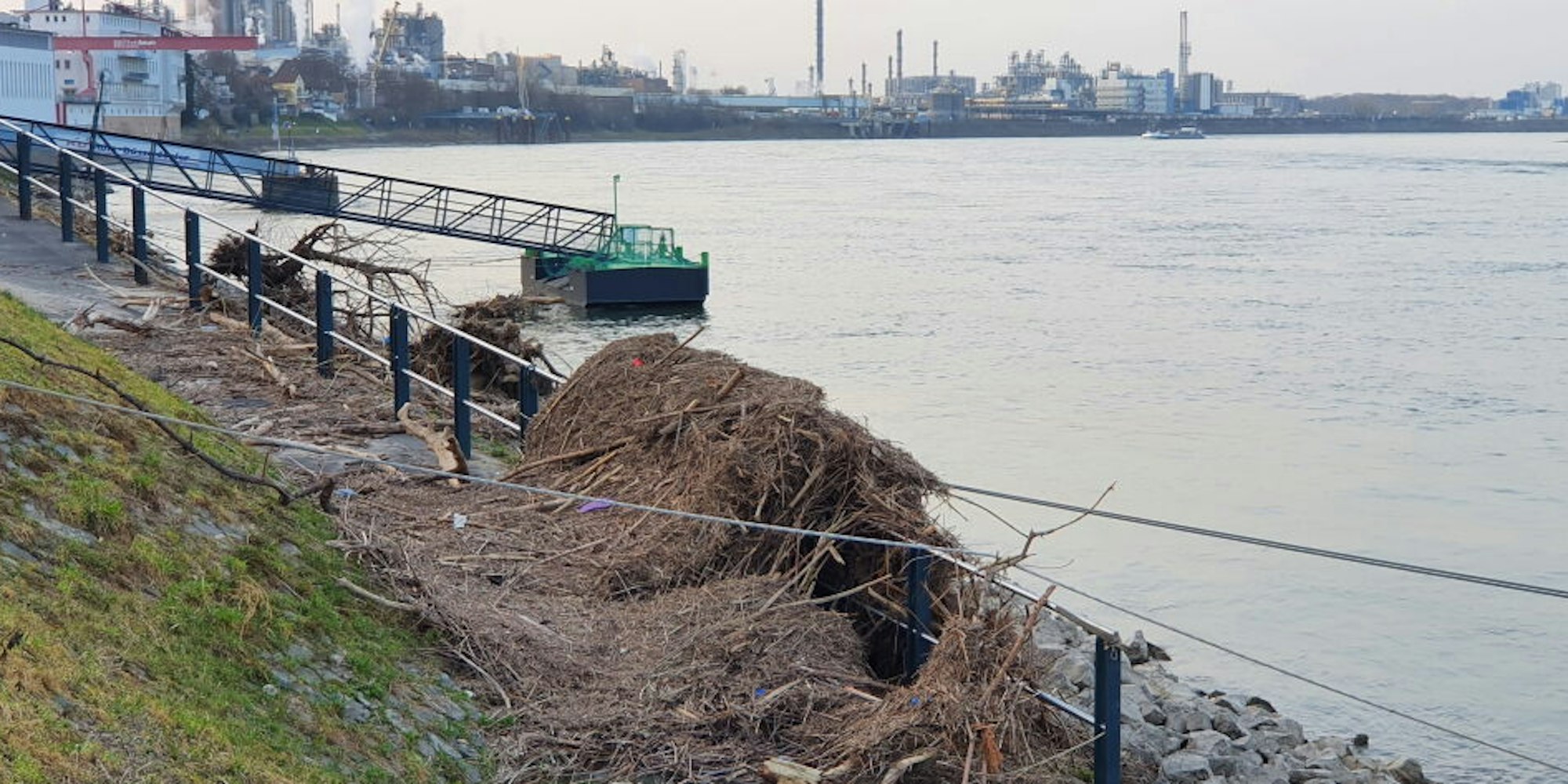 Nur an einigen Stellen erinnert Schwemmgut noch daran, dass der Rhein Anfang Februar bis hoch zur Freitreppe reichte. Neben dem Fähranleger des „Rheinschwans“ ist ein großer Berg aus Ästen und Müll geblieben, als sich der Rhein in sein Bett zurückgezogen hat. Da das Ufer der Öffentlichkeit gewidmet sei, stehen nach dem Landesabfallgesetz die Kommunen in der Pflicht, dieses auch sauber zu halten, so das Wasserstraßen- und Schifffahrtsamt Rhein. Die Stadt wurde auf Nachfrage tätig. Mitarbeiter des Betriebshofs machten sich an die Arbeit.