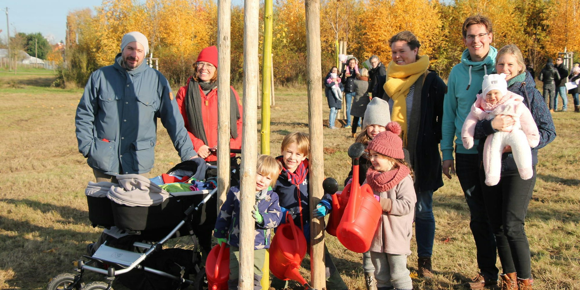 Wesseling-Keldenich – „Jetzt haben wir einen Familienbaum“, freuten sich Sven und Lisa Petersen am Samstagvormittag. Für ihre vier Kinder Jesper (6), Jona (2) und die erst vier Monate alten Zwillinge Jano und Joris hatten sie sich einen Spitzahorn ausgesucht, der jetzt im Babypark Eichholz wächst. Weil jedoch nur Kindern bis zu einem Jahr dort ein Baum gepflanzt werden darf, haben sie ihren Spitzahorn ihrem Nesthäkchen Jano gewidmet. „Sein Name steht auch auf der Urkunde“, erklärte Sven Petersen.