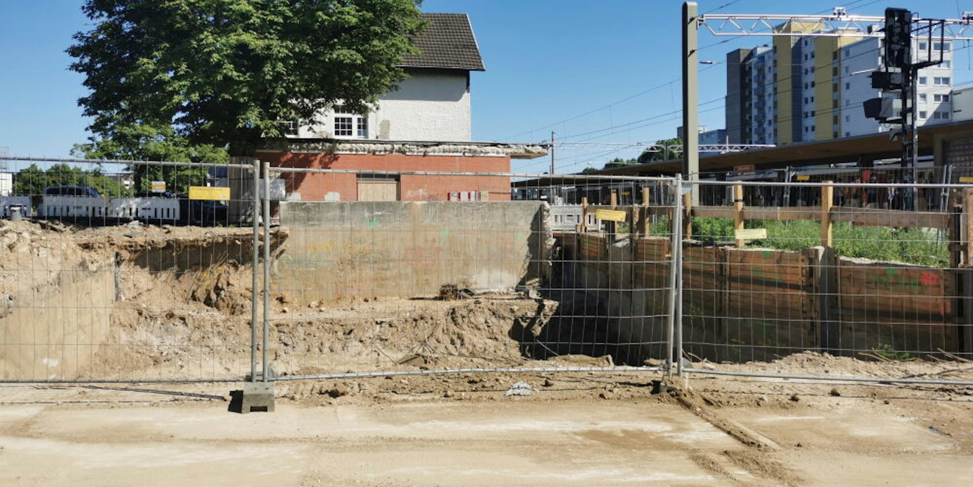 An der Konrad-Adenauer-Straße liegt die Unterführung an den Außenseiten schon frei. In der zweiten Bauphase wird die alte Unterführung Stück für Stück abgetragen.