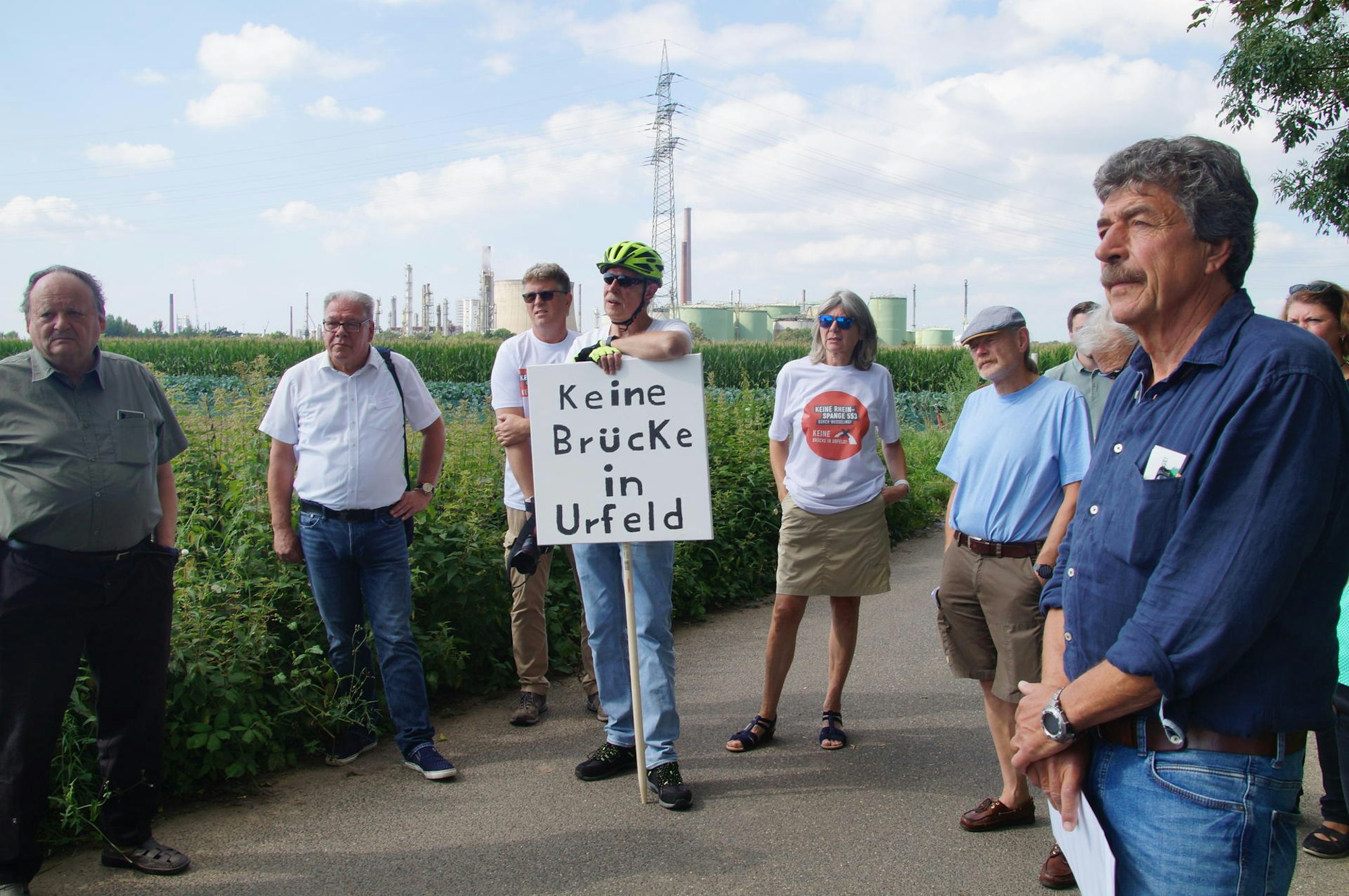 Die Mitglieder der Initiativen gegen eine Rheinspange in Wesseling-Urfeld beziehen deutlich Position.