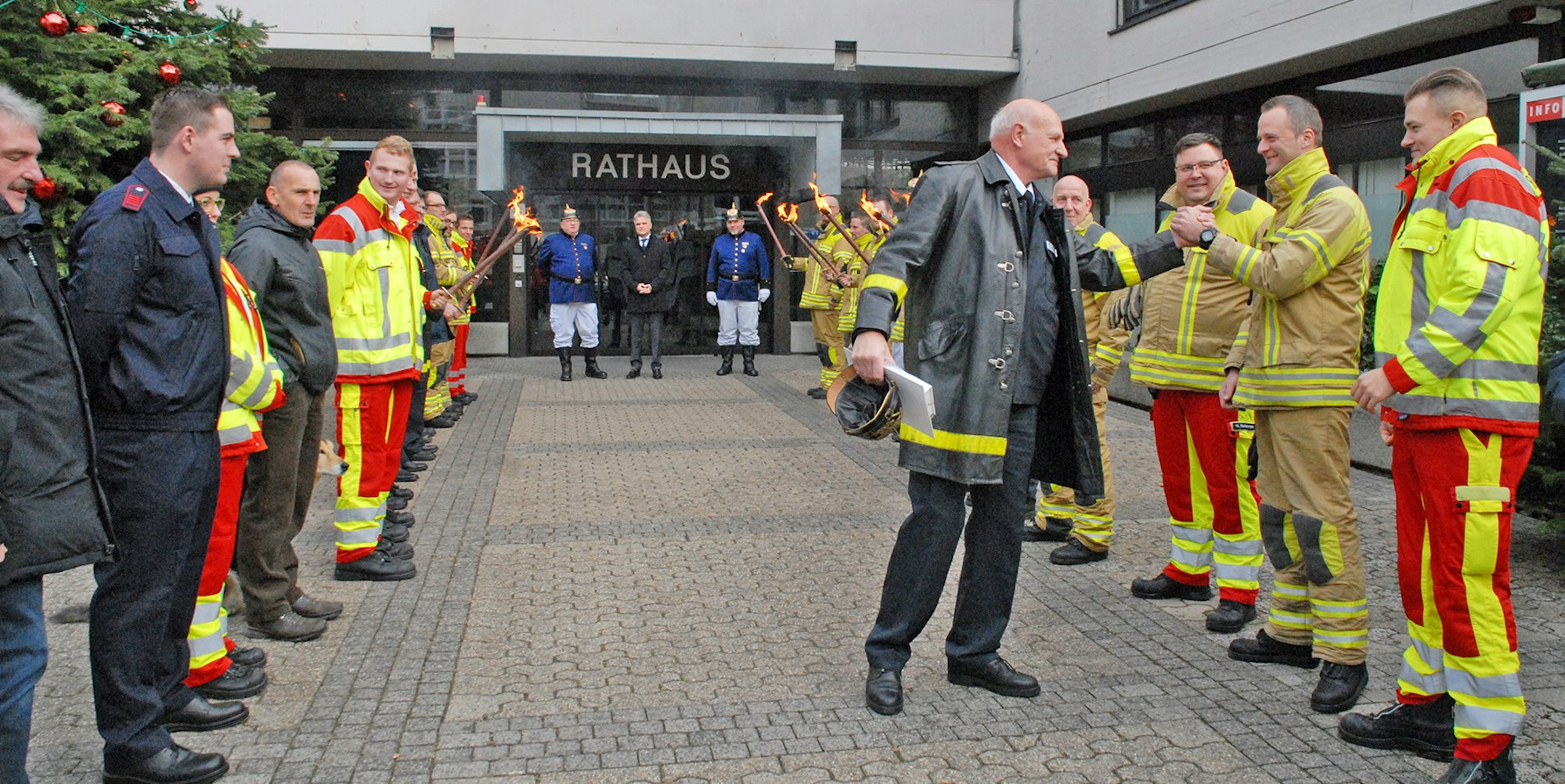 Die Kameraden stehen Spalier für Gerhard Fingerhuth. Er geht in den Ruhestand.