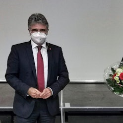 Weil der Mund-/Nasenschutz ein Merkmal der Gegenwart sei, behalte er ihn auch für das Foto auf, sagte Markus Polders (l.).