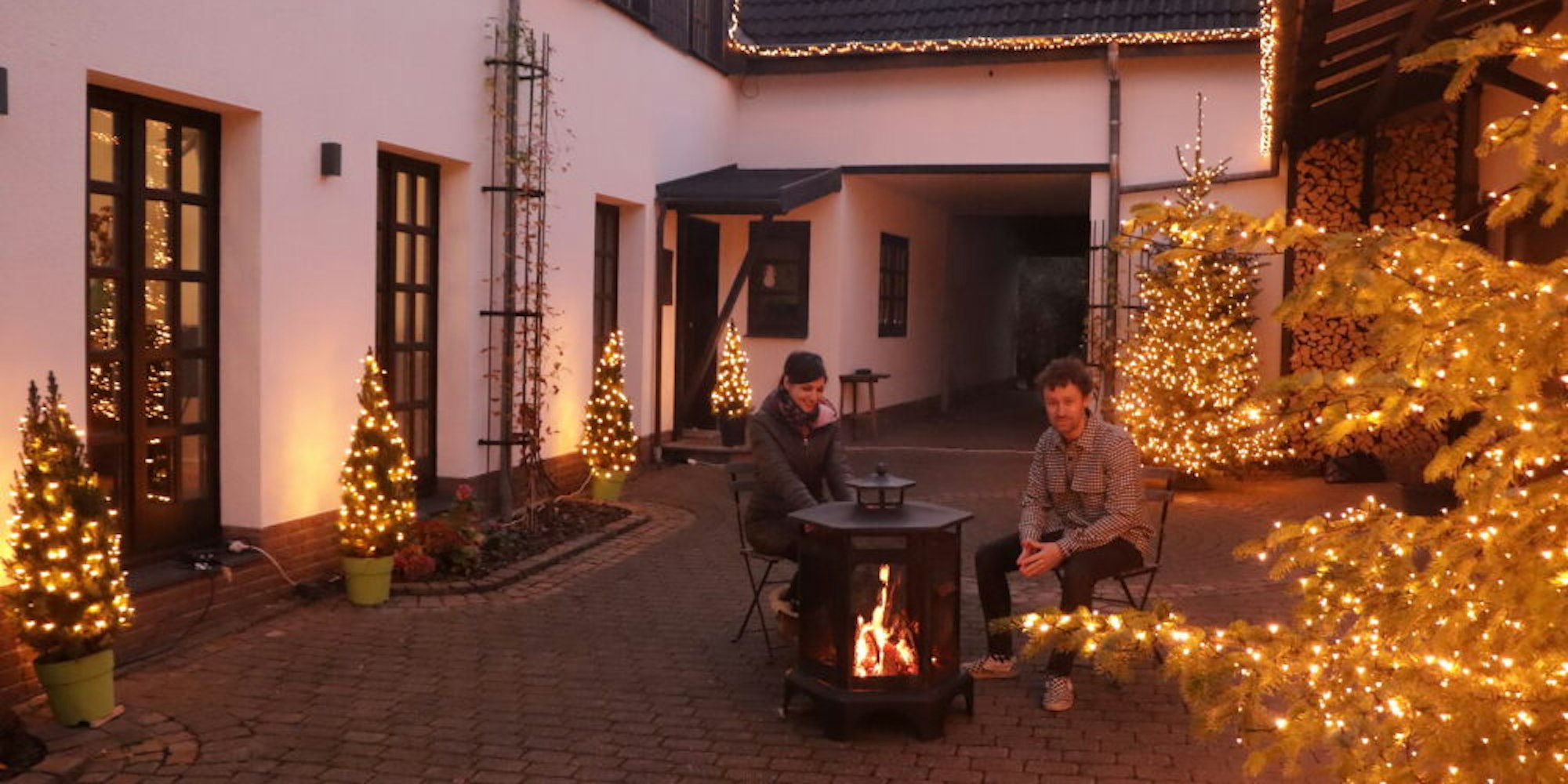 Länger schon sei der Bauernhof aus den 1950er Jahren nicht mehr bewirtschaftet worden. Der Stall, in dem früher das Vieh gehalten wurde, sei bereits vor Jahren zu einer separaten Einliegerwohnung ausgebaut worden. „Wir haben die beiden separaten Wohneinheiten dann erst einmal kernsaniert“, berichtet Laga. 2019 seien dann sein Bruder mit seiner Lebensgefährtin in die Einliegerwohnung gezogen und er mit seiner kleinen Familie in das Haupthaus. Damals hätten sie erst kurz vor dem Weihnachtsfest einige Lichterketten im Hof montiert.