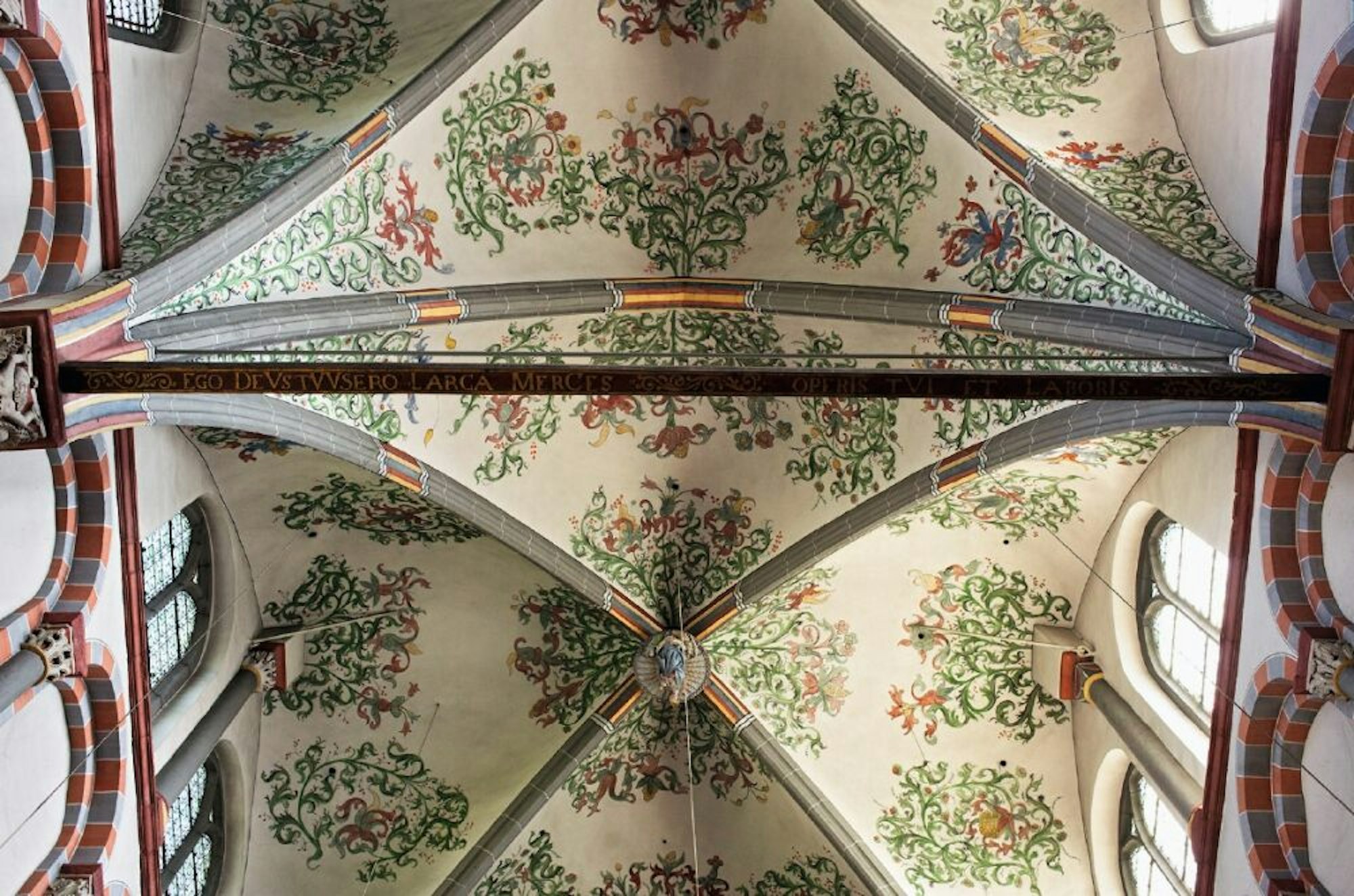 Hier rückt Schmitz die Deckengemälde der Abteikirche in den Blick.