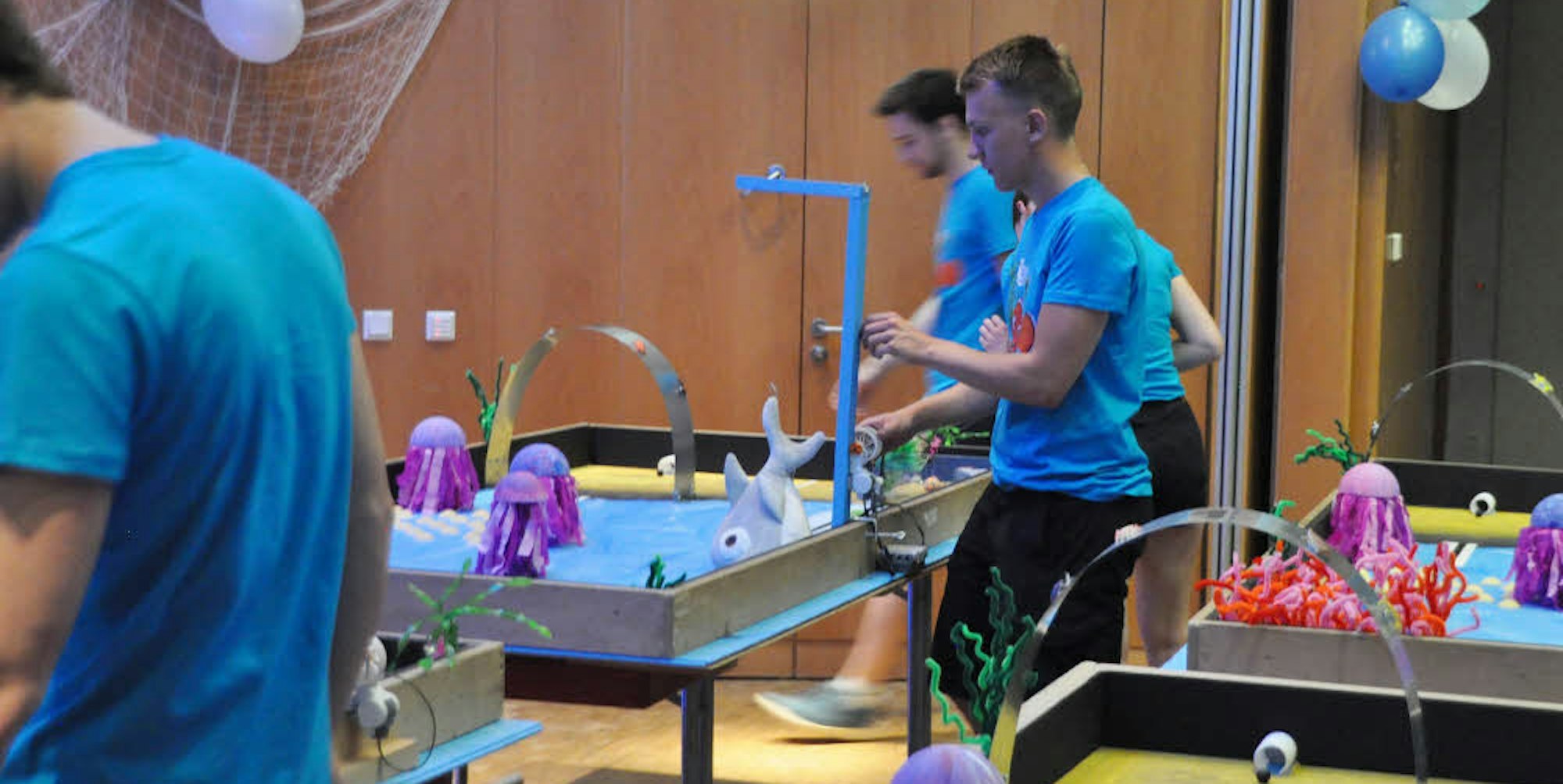 Der Ozean auf dem Tisch: Gegen Haie, Feuerquallen und eine Muschelstrecke mussten die Teilnehmer ihre Roboter zum Sieg steuern.