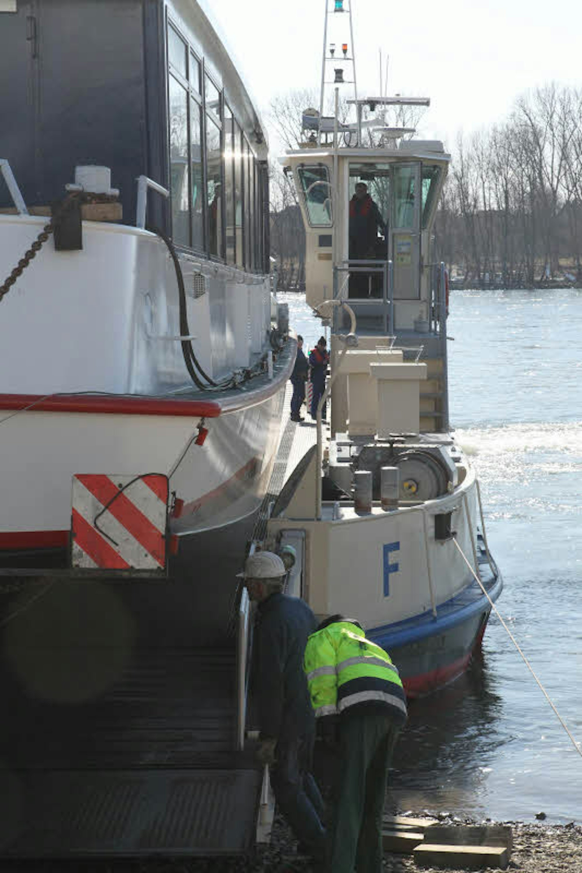 Auf dem Weg in die EifelMondorfer Rheinfähre transportiert neu gebautes Schiff