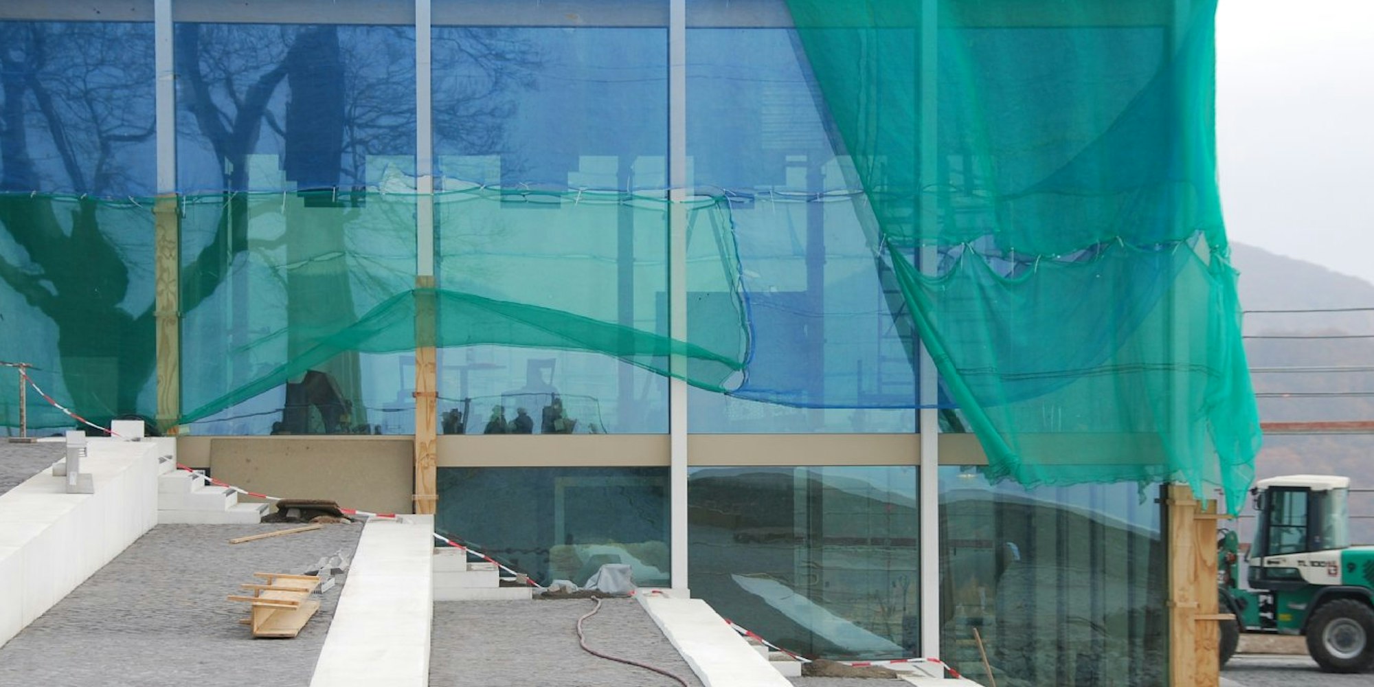 „So viele sind mindestens nötig, denn spätestens ab den Ostertagen rechnen wir mit zehntausenden Besuchern, vor allem an den Wochenenden“, schildert Nolden. Stolz ist er auf sein neues Haus, nur zögernd aber zeigt er die schwarzen Querstreifen, die schon an einem der riesigen Fenster kleben: Sie sollen Vögel vor vielleicht tödlichen Zusammenstößen mit dem harten Glas bewahren. Nachdem der Bund für Umwelt und Naturschutz Deutschland gegen den seiner Meinung nach mangelhaften Vogelschutz an dem Neubau geklagt hatte und vor dem Kölner Verwaltungsgericht Recht bekam, sollen diese zwei Millimeter breiten Streifen alle Glaselemente der Fassade in einem Abstand von 2,8 Zentimetern bedecken.