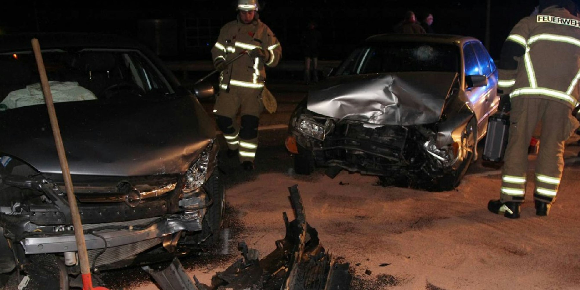 Die Freiwillige Feuerwehr streute die Fahrbahn mit Ölbindemitteln ab, um die ausgelaufenen Öle und andere Betriebsstoffe aufzufangen. Anschließend säuberten sie die Fahrbahn. Die beiden stark beschädigten Autos, nach Angaben der Polizei jeweils Totalschaden, mussten abgeschleppt werden. Die L 312 blieb für die Zeit der Rettungs- und Aufräumarbeiten in beide Richtungen gesperrt. Polizisten leiteten den Verkehr um.