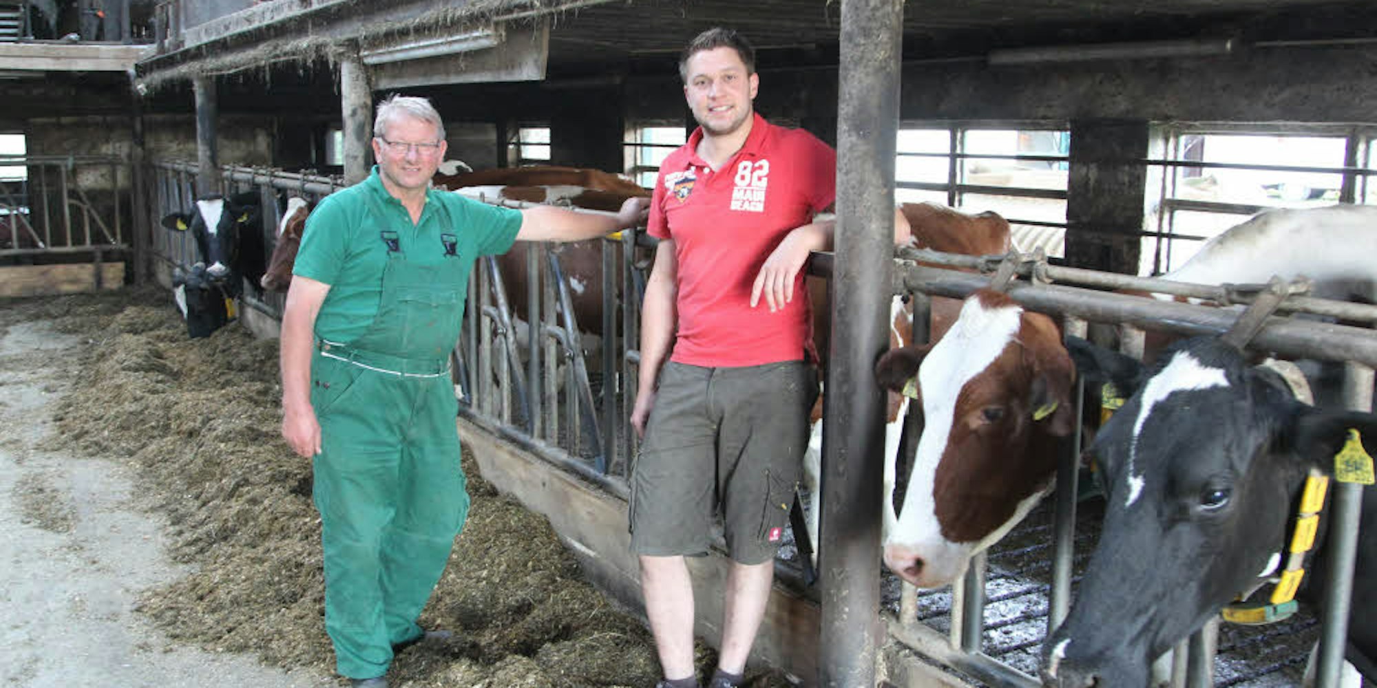 80 Milchkühe hat Marcel Andree (rechts), der den Hof von seinem Onkel Michael Aumüller (links) übernommen hat.