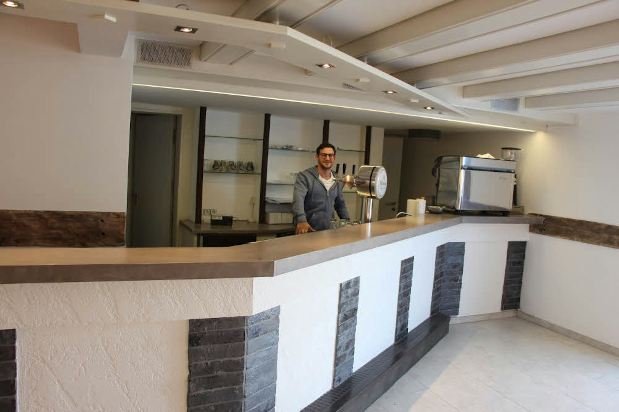 Ignazio Giacone im neuen Thekenbereich am Eingang (l.) und im renovierten Festsaal, der Platz für 240 Personen bietet.