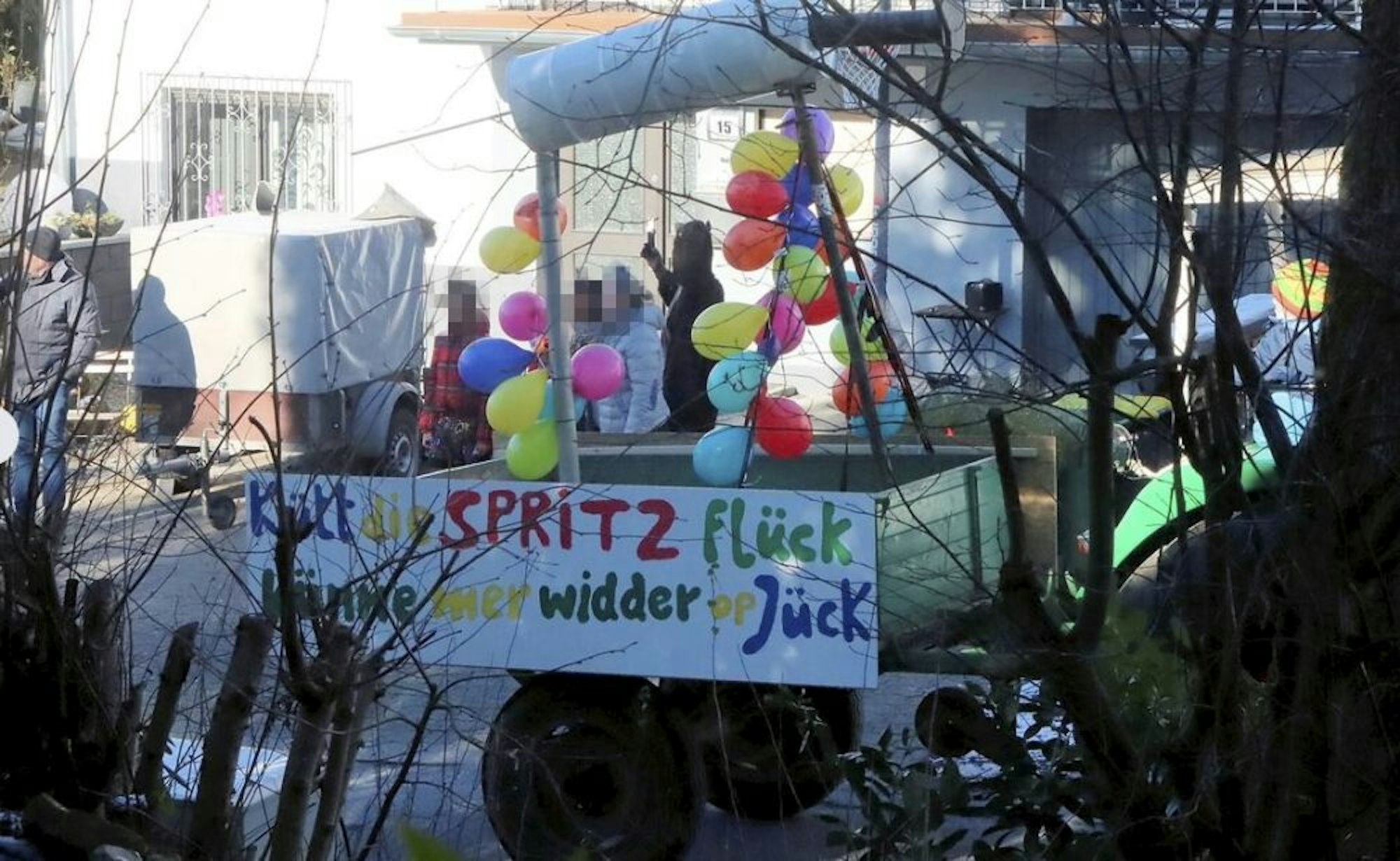 Stolz veröffentlichten die Karnevalisten Bilder und Videos von der Aktion in den sozialen Medien: Darauf ist zu sehen, wie sich die bunt geschmückten Trecker und Autos durch Seelscheid schieben. „Dä Coronazoch kütt“ stand auf einem Schild an einem der Frontlader. „Karnevalsabsage von Spahn, werden wir Kolonne fahr’n“ auf einem anderen. Ein Auto zog einen Anhänger mit einer überdimensionalen Spritze. Darunter stand in bunter Schrift: „Kütt die Spritz flück, künne mer widder op jück“. Laute Musik schallte aus zwei Musikanlagen.
