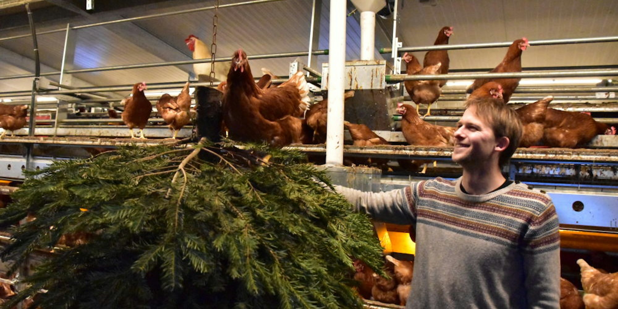 - Größter Fan der Tannen? Das sind die 1000 Legehennen, die auf dem Hof des Bauern leben.