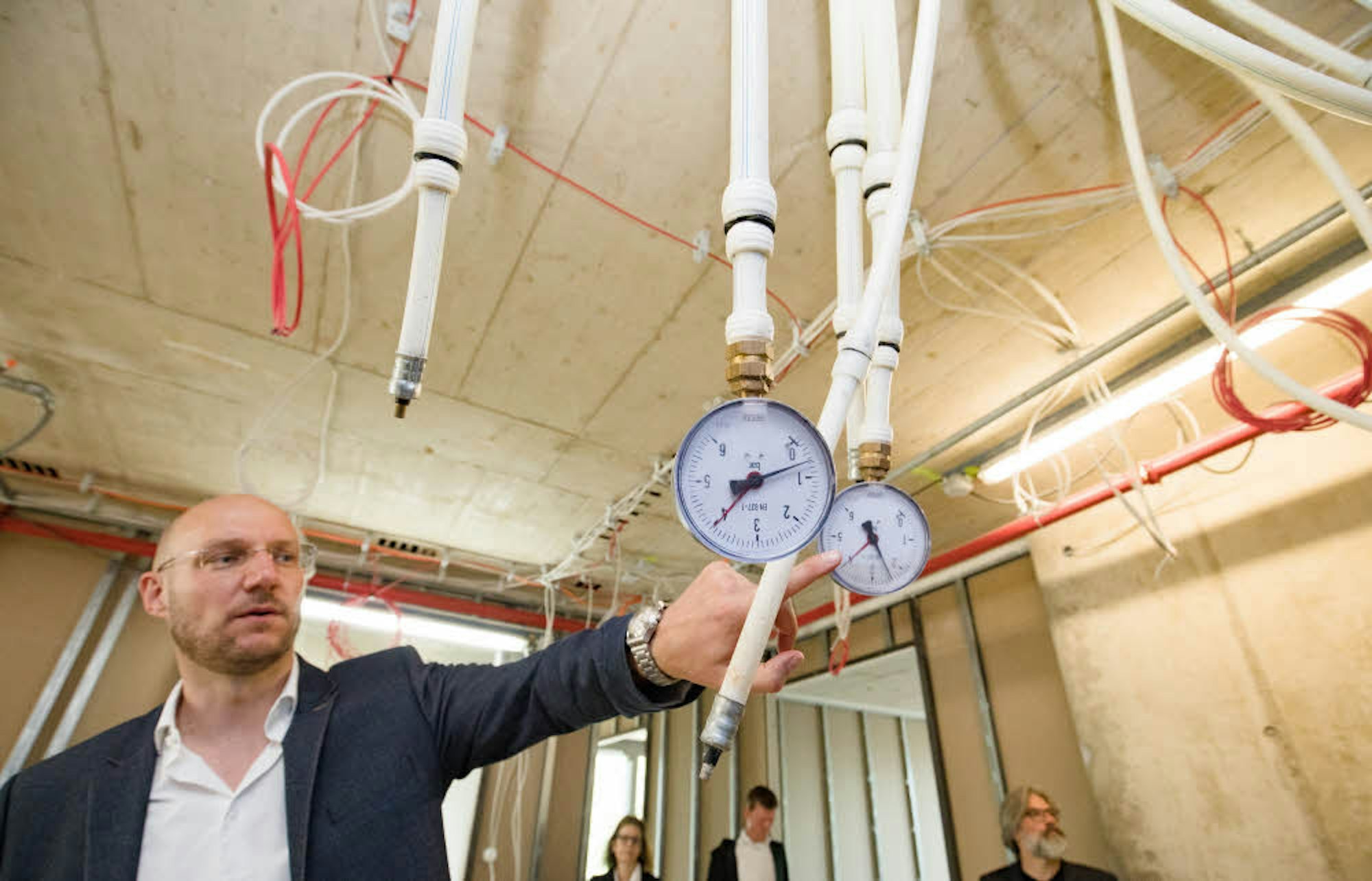Projektleiter Benedikt Siebert erläuterte den Besuchern die Baufortschritte und die anstehenden Arbeiten.