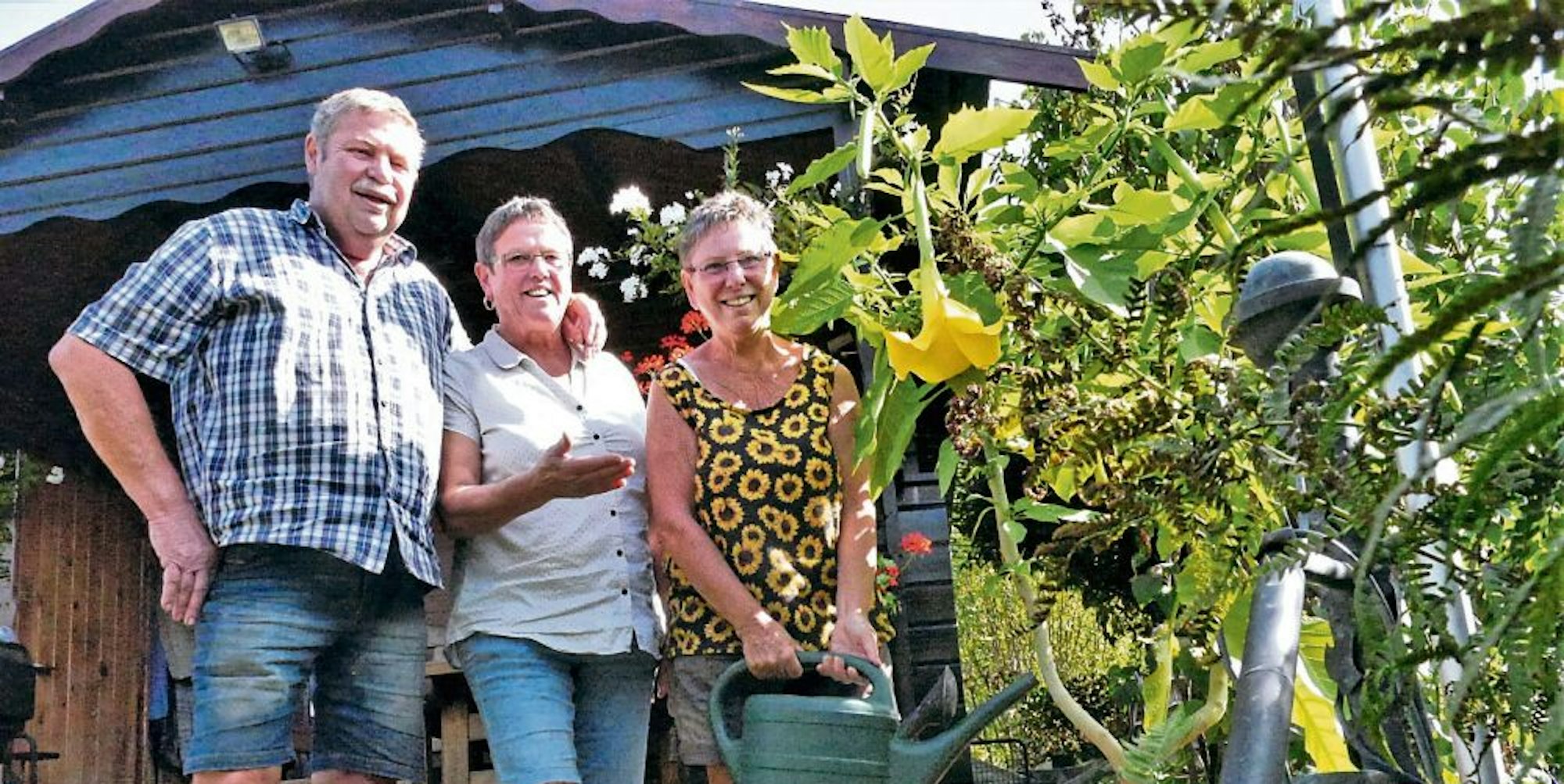 Gehen sparsam mit Wasser um: Kleingärtner Dieter und Edith Golla (von links) mit Nachbarin Helga Felten.