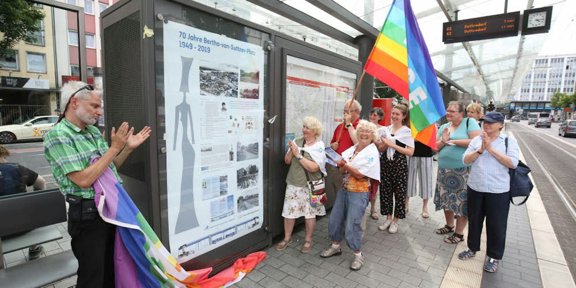 Der Platz sei per Ratsbeschluss am 5. August 1949 nach Bertha von Suttner benannt worden, der großen österreichischen Friedensaktivistin. „Die Benennung war damals eine durchaus umstrittene Entscheidung. Wir finden, der Bonner Stadtrat hätte keine bessere treffen können. Bonn und Bertha – das passt einfach zusammen!“, so Schütz.