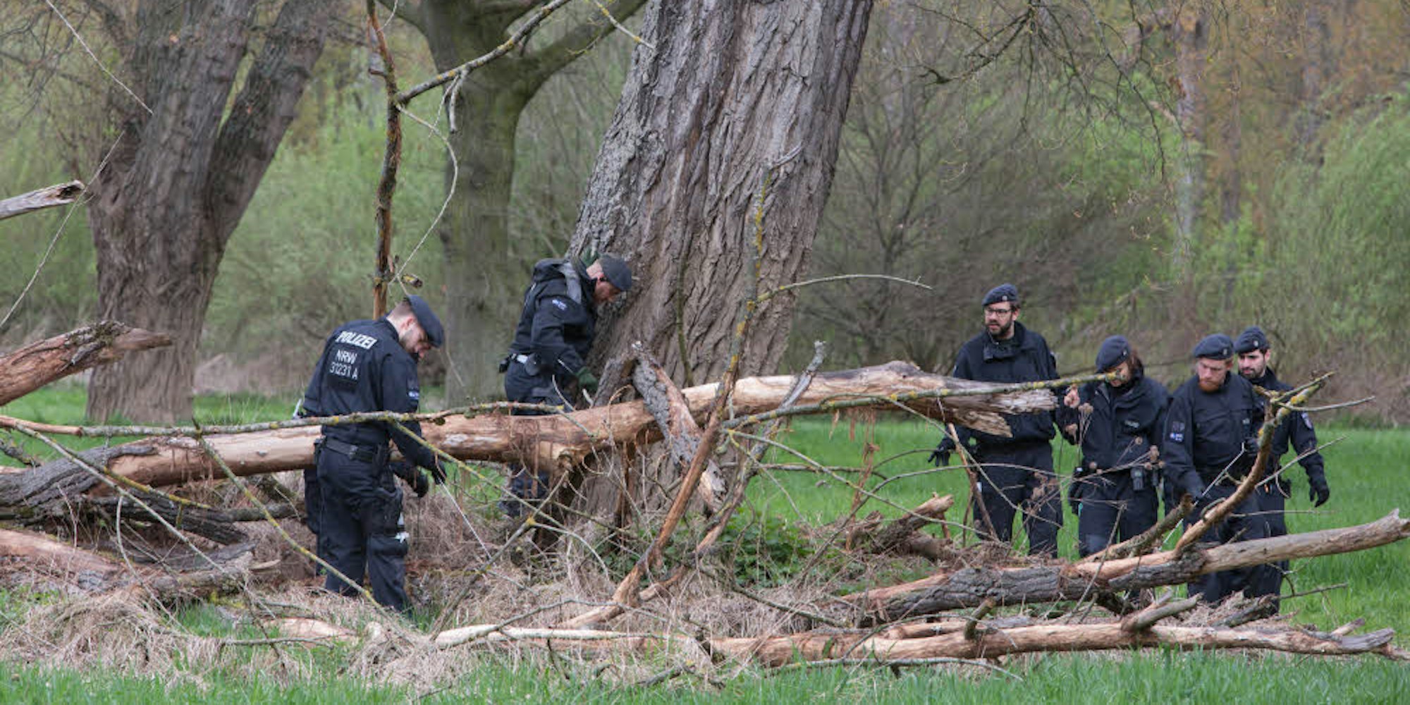 Rund 80 Bereitschaftspolizisten aus Köln und Bochum durchkämmten das Gebiet auf der Suche nach Spuren.