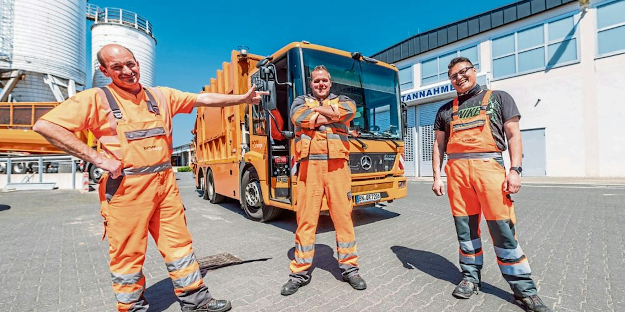 Bonn – Bonn. Die Jungs sind noch keine Stunde mit ihrem Truck unterwegs, da fährt der „Sheriff“ vor. Die Tür des weißen Vans geht auf. Andreas Jambor steigt aus. Der Mann ist bei Bonnorange für Recht und Ordnung zuständig. Er kontrolliert, ob Müll rumliegt, wo er nicht hingehört.