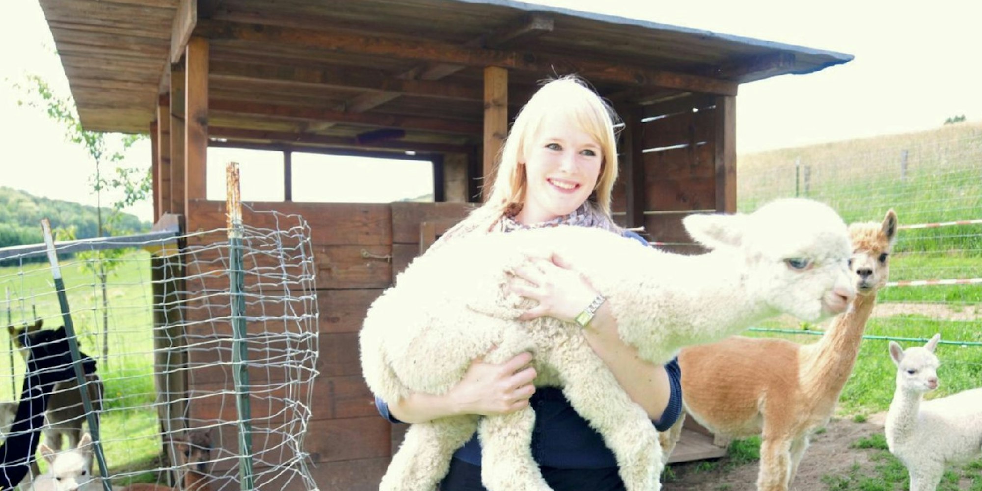 Kim Borrmann zieht gemeinsam mit ihren Eltern die Alpaka-Fohlen auf. Elf sind es aktuell auf dem Hof in Kohlberg.