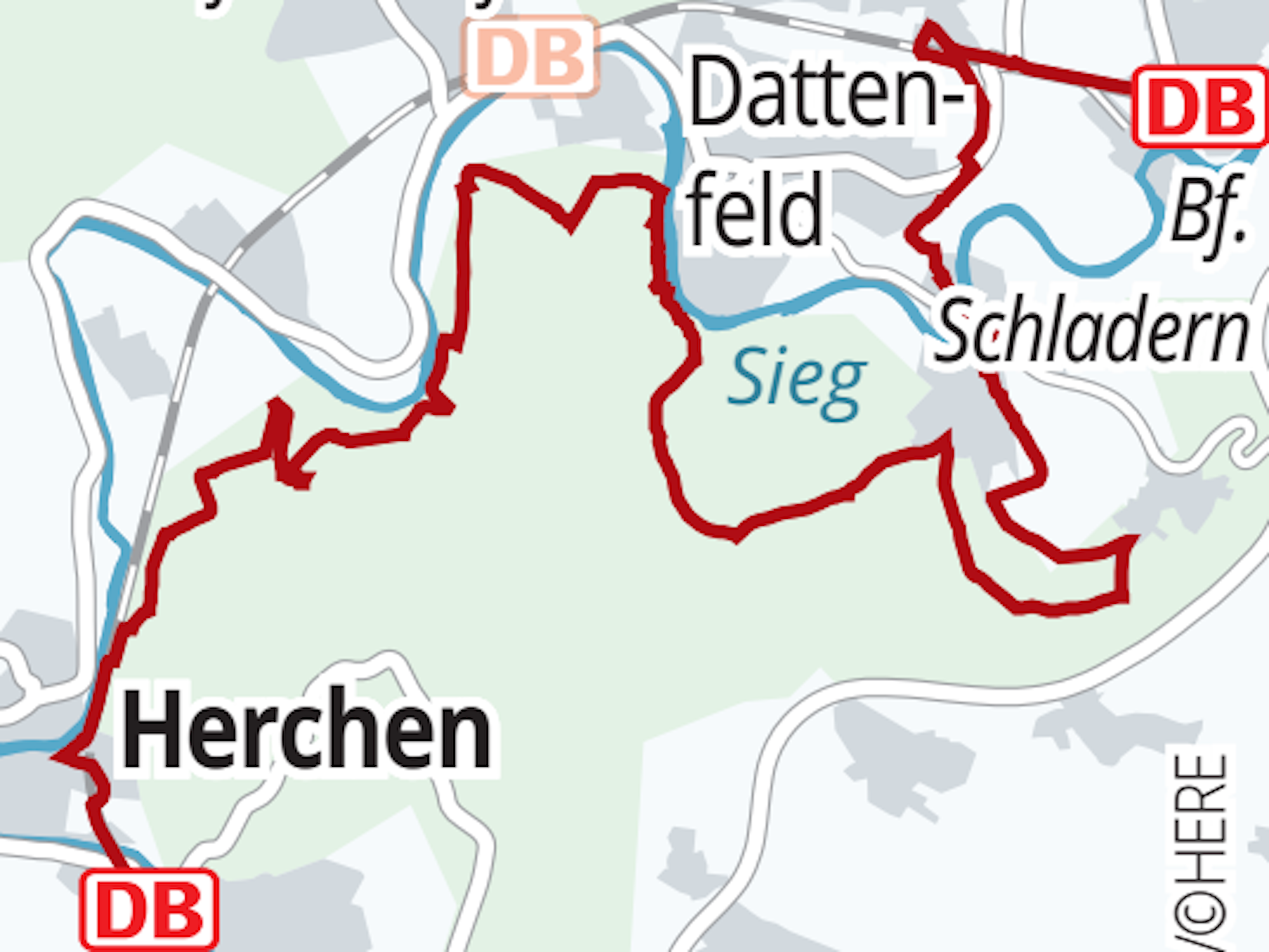 Zurück am Lauf der Sieg geht es gemächlicher weiter, durch die Wälder hinauf und schließlich hinab in die in grauer Vorzeit trockengefallene Dreiseler Siegschleife, im weiten Bogen an Helpenstell vorbei nach Dreisel und über die Siegbrücke. Noch einmal geht es steil nach oben, über den Kamm östlich von Dattenfeld hinab in eine weitere ehemalige Siegschleife. Durch die Auen führt der Pfad nach Altwindeck.
