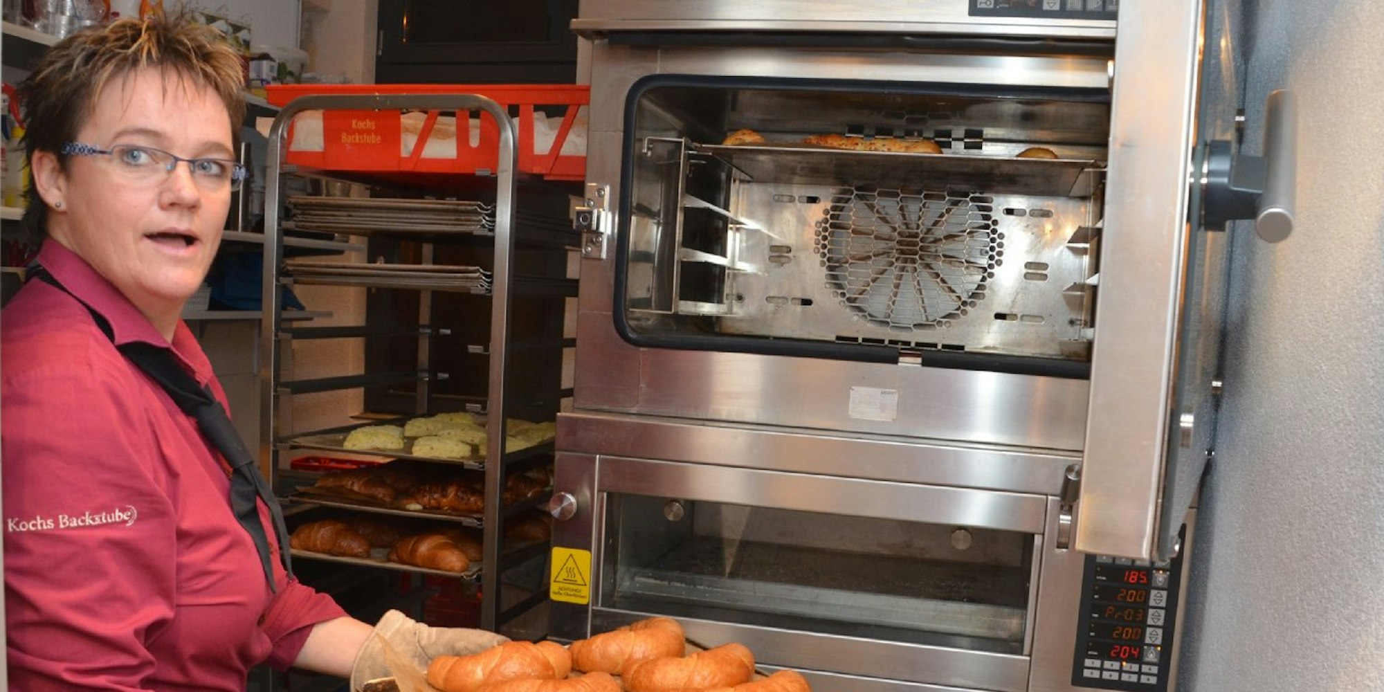 In 7 Minuten backt Silke Hundhausen die Croissants im Schladerner Bahnhof noch fertig.