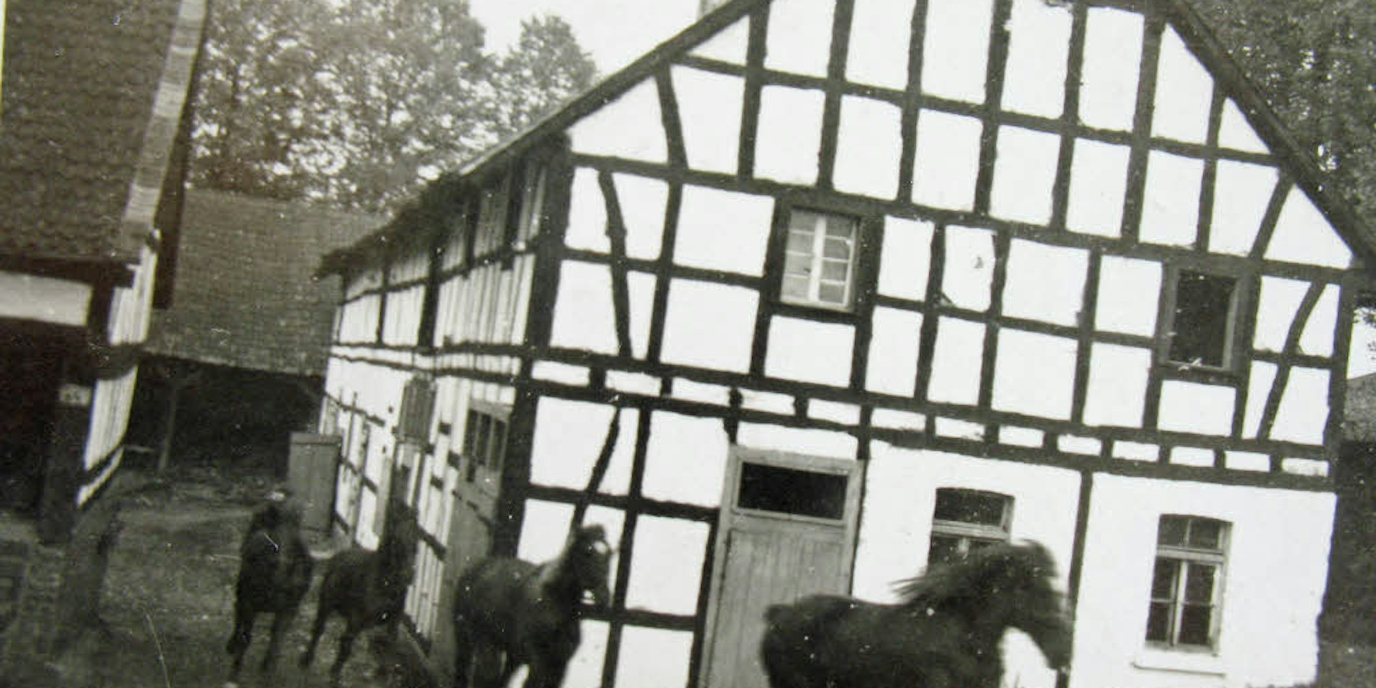 1957 folgte der Rauswurf aus dem Paradies: Das 155 Hektar umfassende Land wurde verkauft, der Großvater musste den Hof nach 50 Jahren verlassen. „Alles bewegliche Mobiliar wurde versteigert, vom Erlös kaufte sich Opa einen Hof in Hennef.“