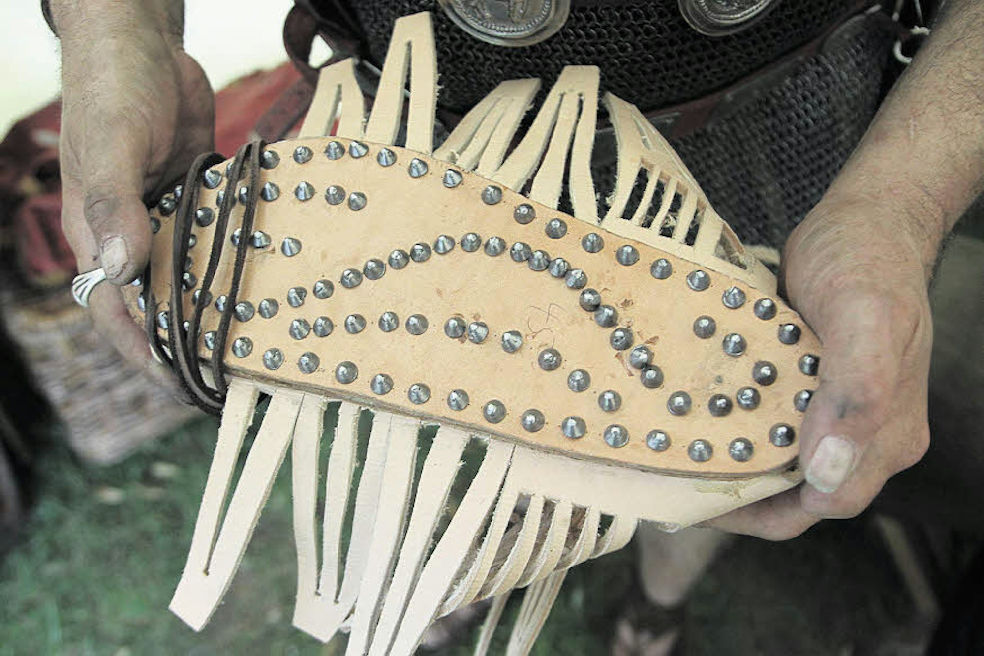 Zum Schutz des Leders beschlägt Quintus Varius seine Sandalen mit Nägeln.
