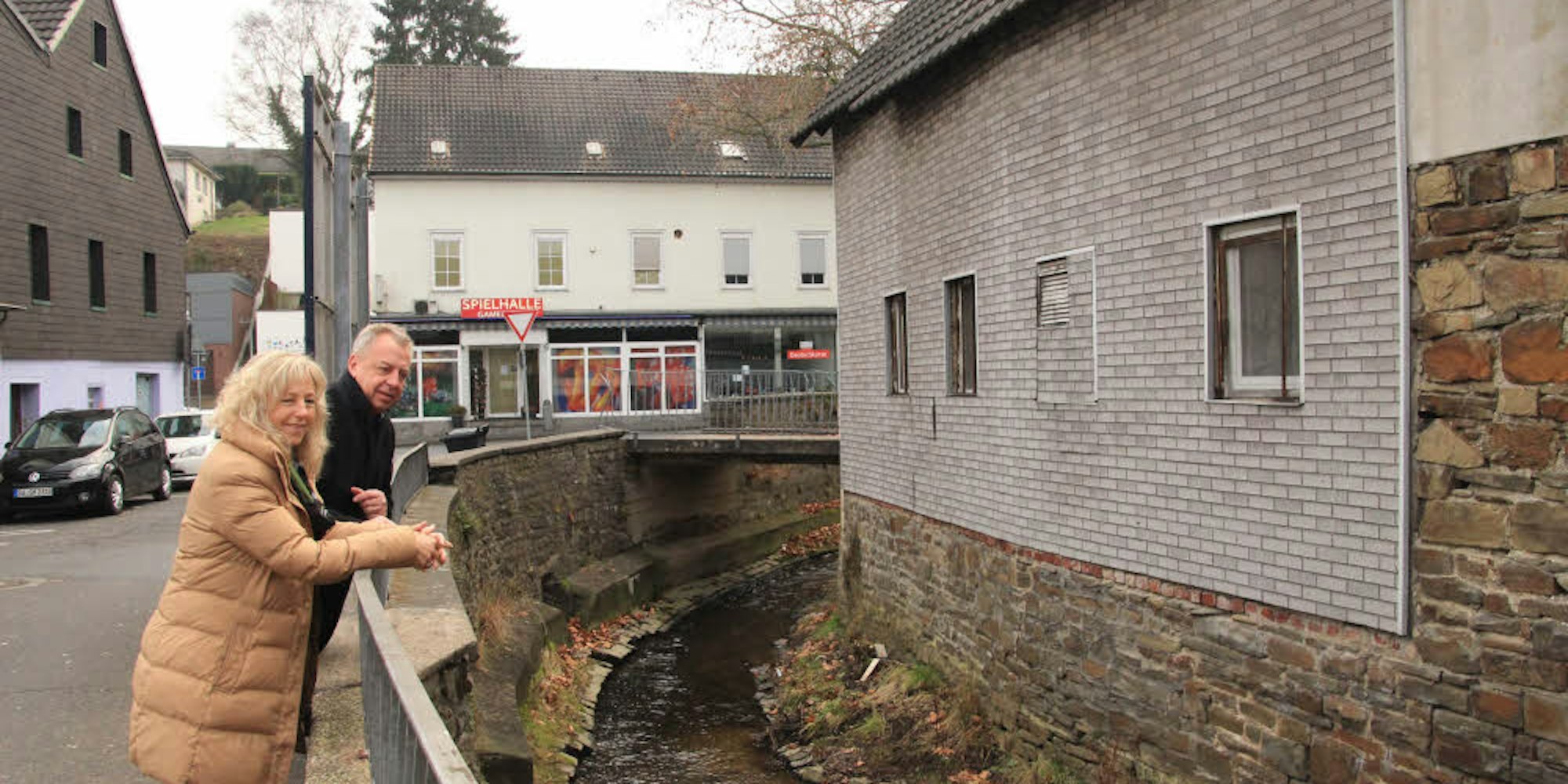 Eipbach-Einfassung und Hausfassade sollen attraktiver werden, finden Michaela Straßek-Knipp und Hartmut Derscheid; auch der Durchgang vomMarkt zur Turmstraße muss modernisiert werden.