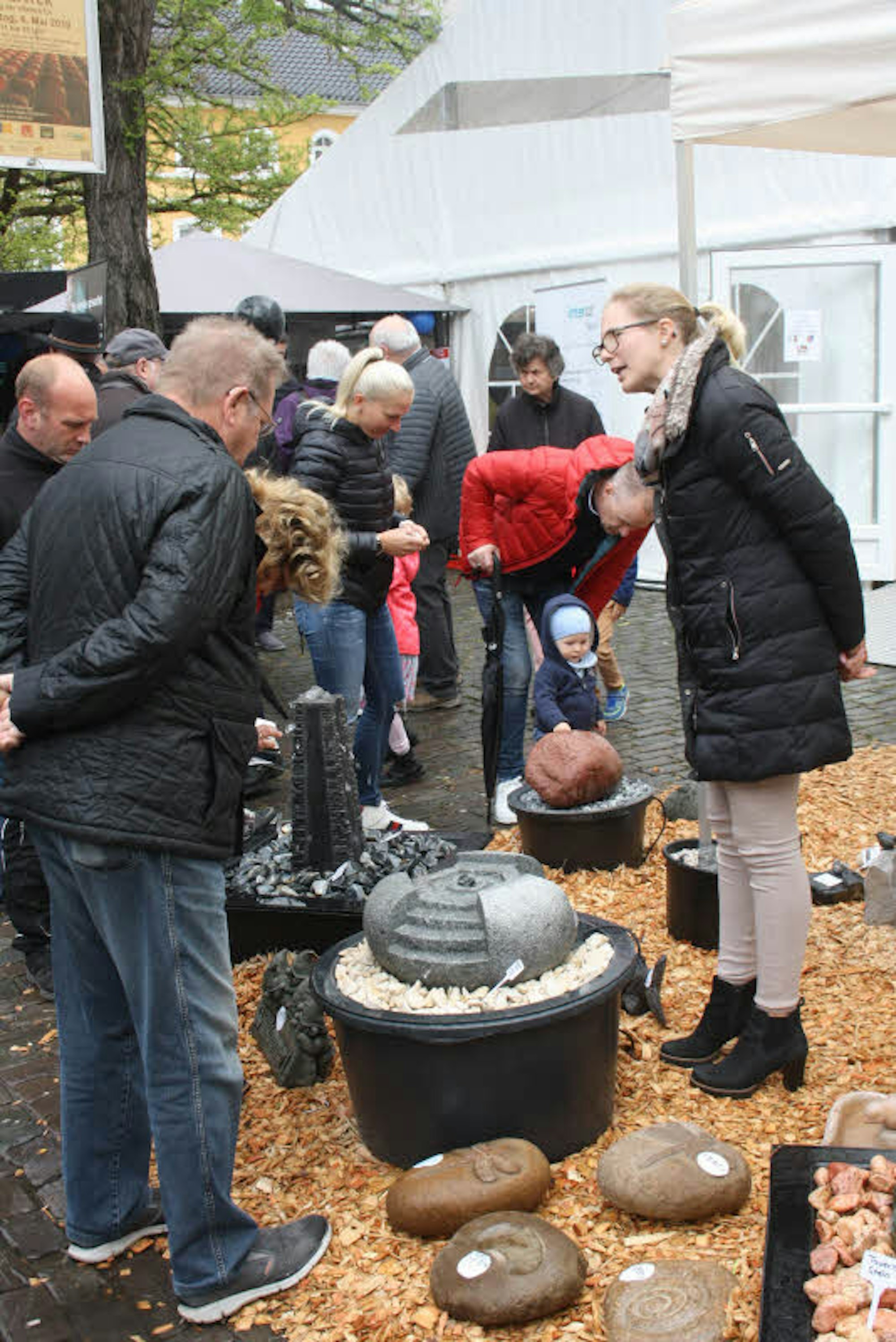 Nahezu alles, was vor allem Haus- und Gartenbesitzer in ländlichen Rhein-Sieg-Kreis benötigen, war bei der Schau zu besichtigen und zu kaufen: Laub- und Abfallsauger, komplette Einbauküchen, Insektengitter, unterschiedlichste Springbrunnen, Teichfilteranlagen, schmiedeeiserne Zäune und Treppengeländer sowie Tempelfiguren aus Stein für ein bisschen asiatisches Flair im Vorgarten. Wer bislang weder den noch ein eigenes Haus besitzt, der konnte im großen Zelt einen ersten Schritt gehen, um dies zu ändern: Denn auch Fertighaus-Hersteller priesen ihre Produkte dort an. Ergänzt wurde das Angebot durch verschiedene Dienstleister, darunter die Arbeitsagentur und Energieversorger.