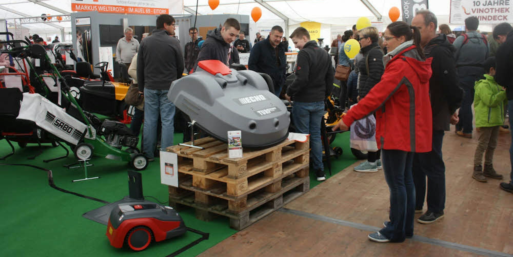 Eitorf – Hier schlagen nicht nur Männerherzen höher: Die Stände mit Rasenmähern und Grills gehören beim Eitorfer Frühling seit Jahren zu den Publikumsmagneten, an denen sich das interessierte Publikum knubbelt. Das war auch bei der diesjährigen Auflage der Leistungsschau von Handel, Handwerk und Dienstleistern aus der Region am vergangenen Wochenende nicht anders, zumal immer wieder ein kleiner Regenschauer die Besucher aus dem Außenbereich in das große Zelt auf dem Marktplatz trieb.