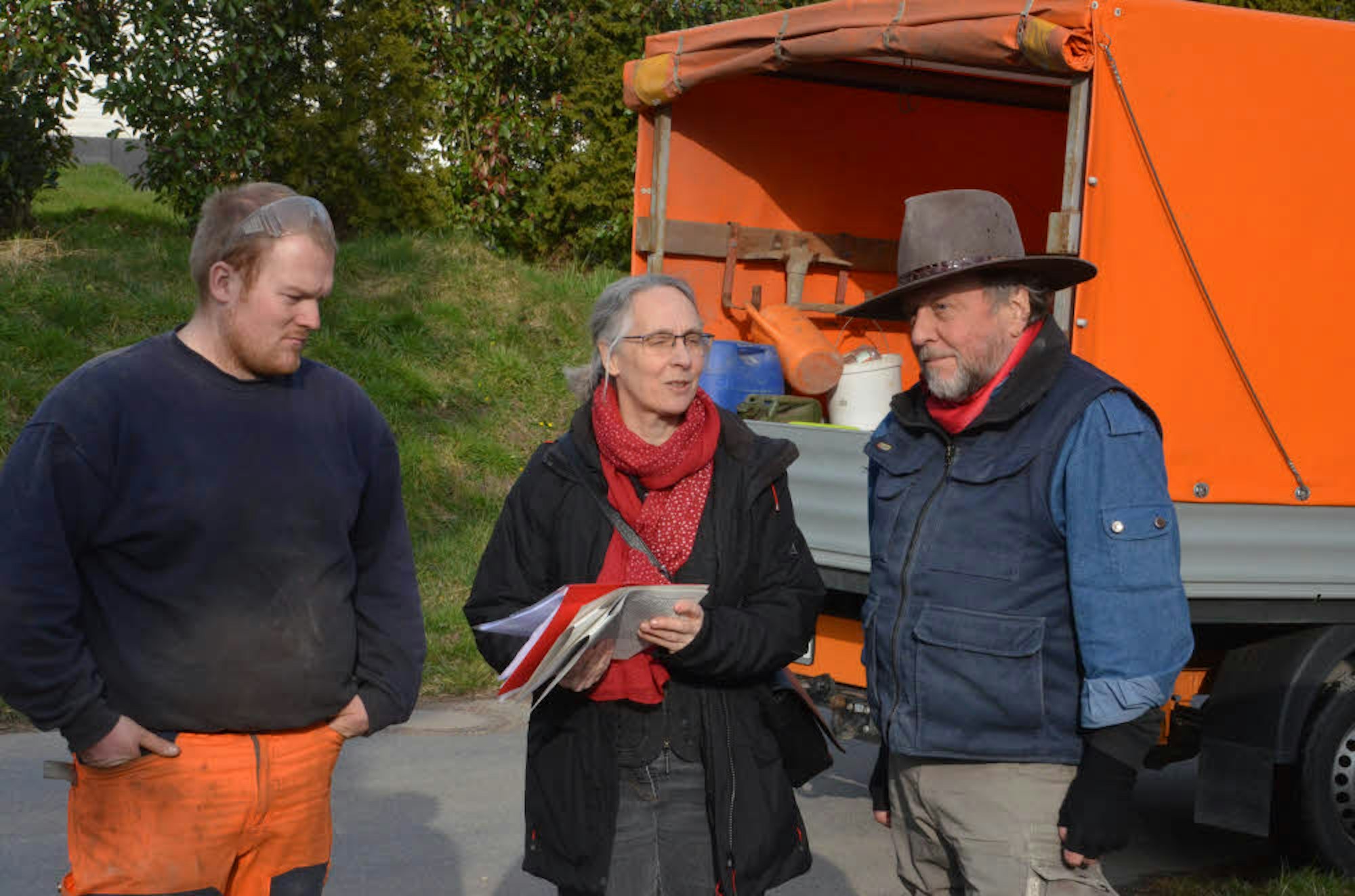 Handwerklich unterstützte Kai Adolph (l.) vom Bauhof den Künstler bei seiner Arbeit, Recherchen zum Schicksal der Nazi-Opfer steuerte Anne Röhrig vom Zeitzeugenforum bei.