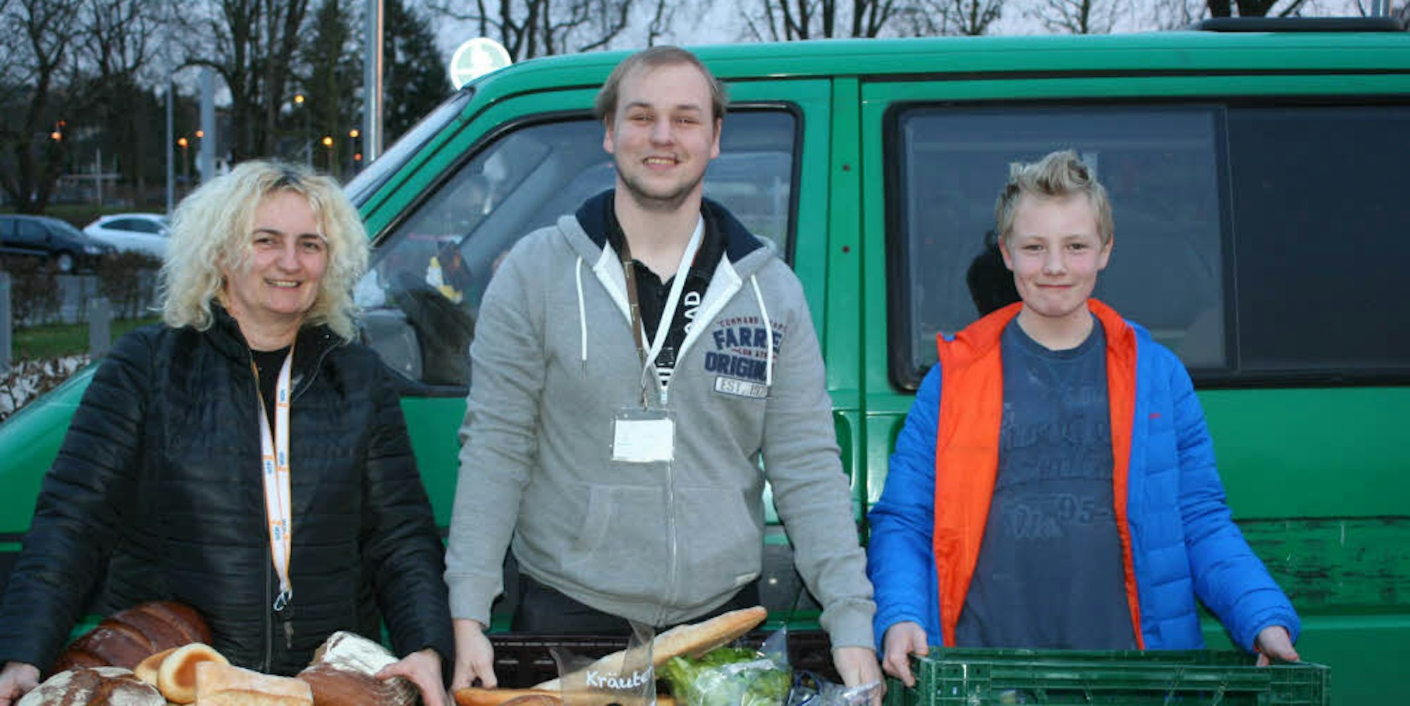 Unverkäufliche Lebensmittel holen die Helfer bei den Betrieben ab und verteilen sie. In der Mitte: Organisator Matthias Jühlen.