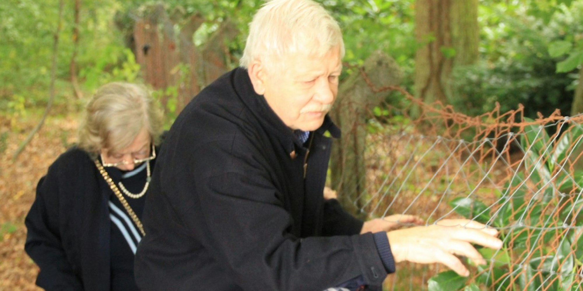 Eitorf – Die Handgriffe sitzen. Die Finger in den Maschendrahtzaun, mit der anderen Hand ein Stück weiter unten in das ausgeleierte Drahtflechtwerk greifen und sich vorsichtig den Abhang hinunter hangeln. So bewältigen Jürgen und Marie-Luise Nowack den kleinen und steilen Abhang zum Begräbniswald am Friedhof Lascheider Weg. Doch auch wenn sich das Ehepaar eine gewisse Routine zugelegt hat: Der steile und rutschige Abhang, finden die beiden Senioren, ist den Besuchern des Begräbniswaldes nicht zumutbar.