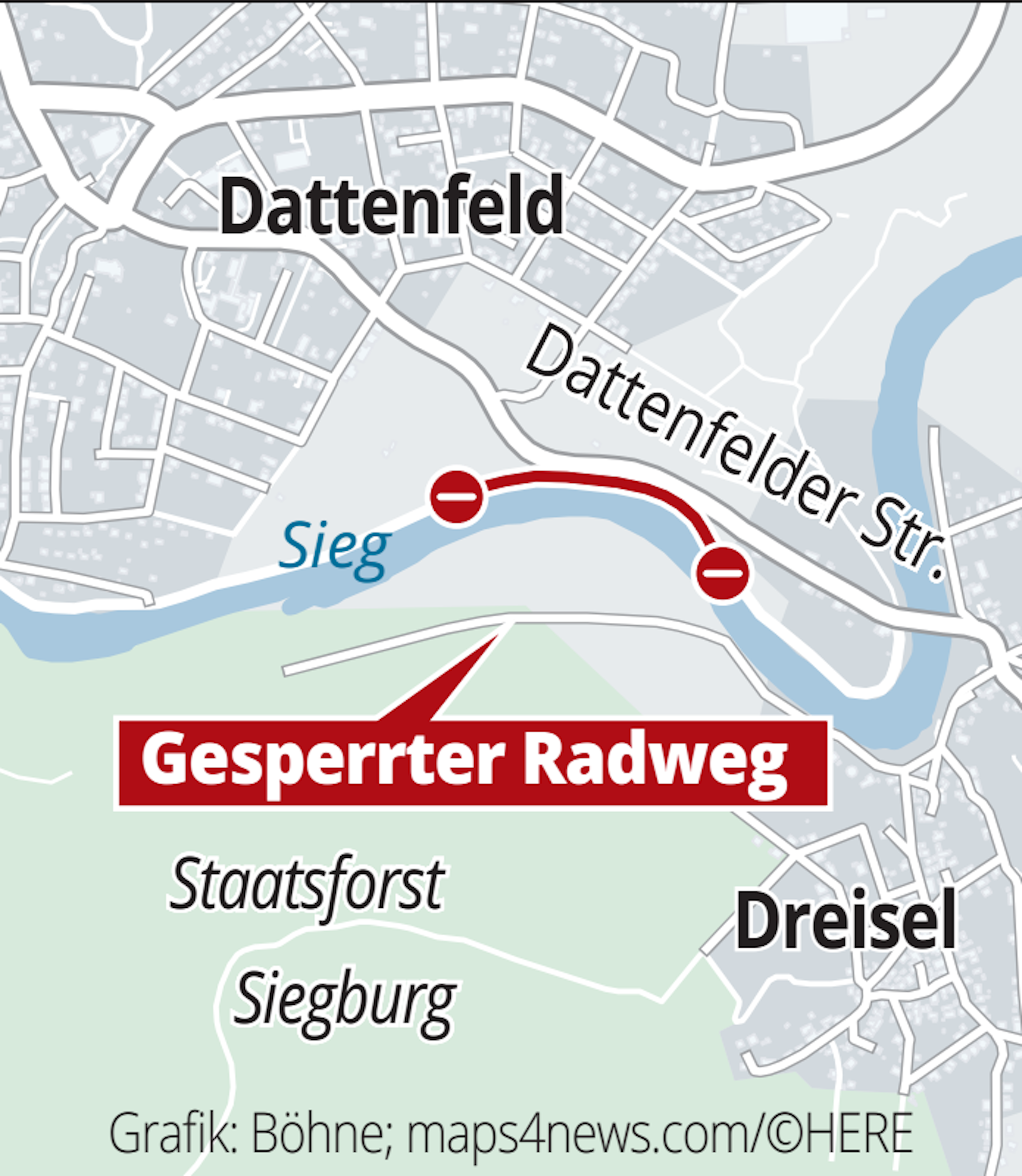 Gesperrter Radweg bei DattenfeldFünf Millionen Euro für die Sicherheit