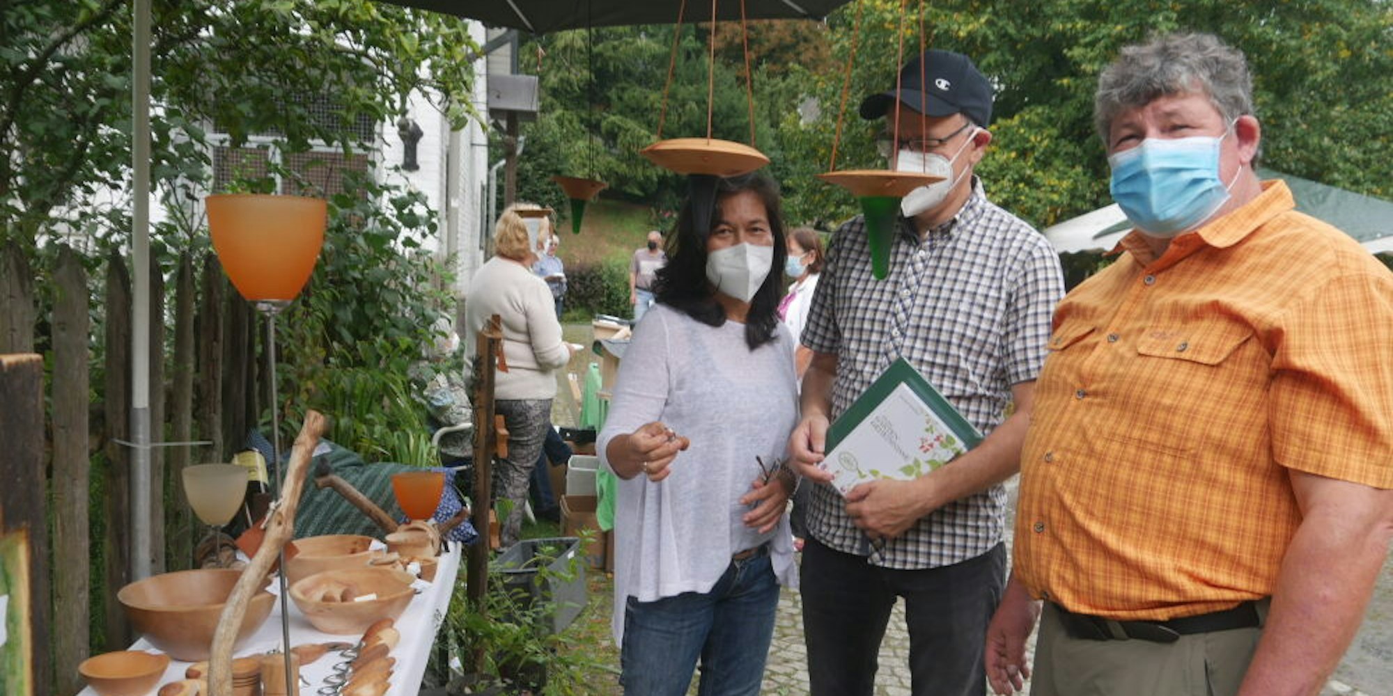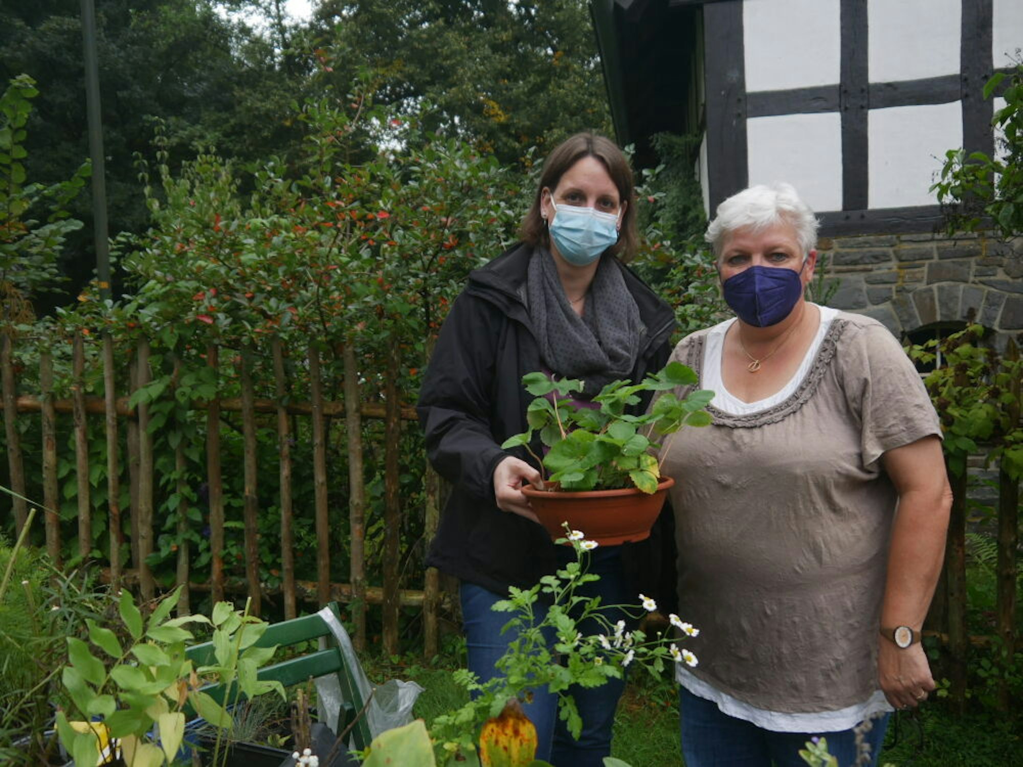 Die Bergische Gartenarche, die sich dem Erhalt alter Sorten verschrieben hat, nutzte den Flohmarkt, um das Jubiläum zum 20-jährigen Bestehen wenigstens ein wenig zu feiern. „Wir haben bisher nur online feiern können“, bedauerte Sigrid Fröhling, die mit Tochter Lena Schriewer das neue Buch der Gartenarche „Meine Gartengeheimnisse“ vorstellte, ein Gartennotizbuch mit vielen Tipps und zauberhaften Zeichnungen. Marianne Frielingsdorf vom Freilicht-Museum Lindlar hatte es dem Verein kostenfrei zur Verfügung gestellt.