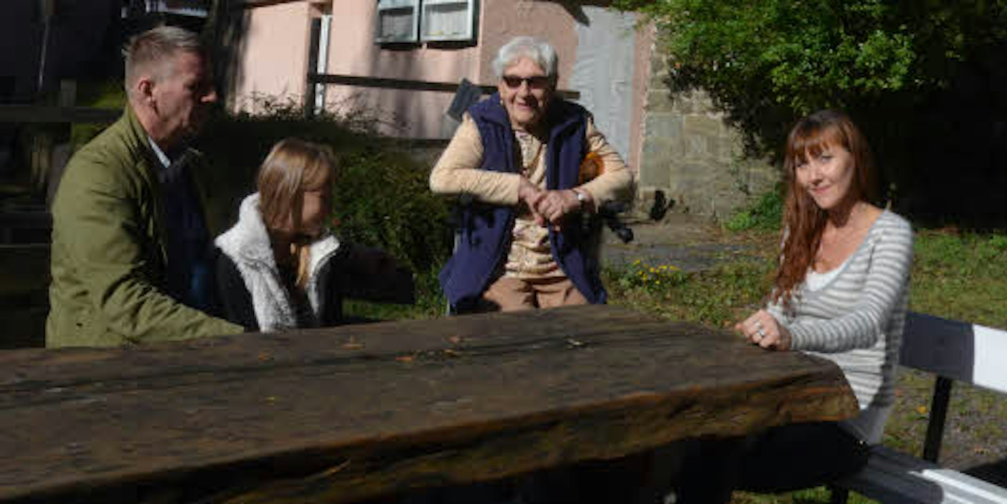 Die Traditionsgaststätte Löwenburg wollen Axel und Olga Bartlitz wiederbeleben. Tochter Amelija freut sich schon auf die Schule, Lore Heinrichs (Mitte) auf den Kaffeeklatsch.
