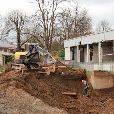 Ray Wilkins vor der Baustelle des Hermann-Weber-Bades, das er künstlerisch gestalten soll.