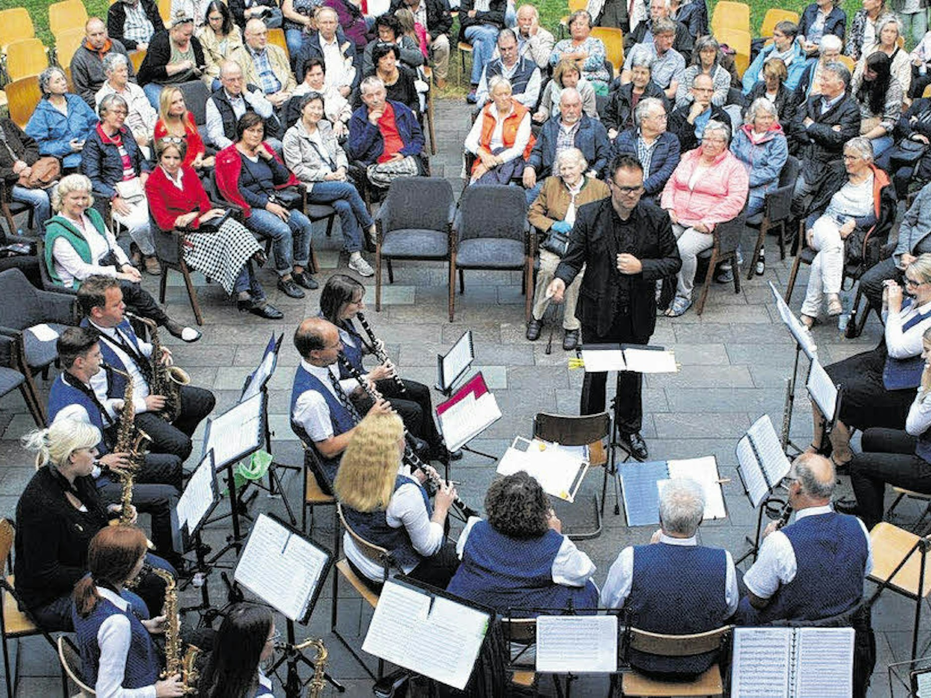 Marco Lichtenthäler, der neue Leiter des Blasorchesters, präsentierte mit den 40 Musikern einen bunten Melodienstrauß.