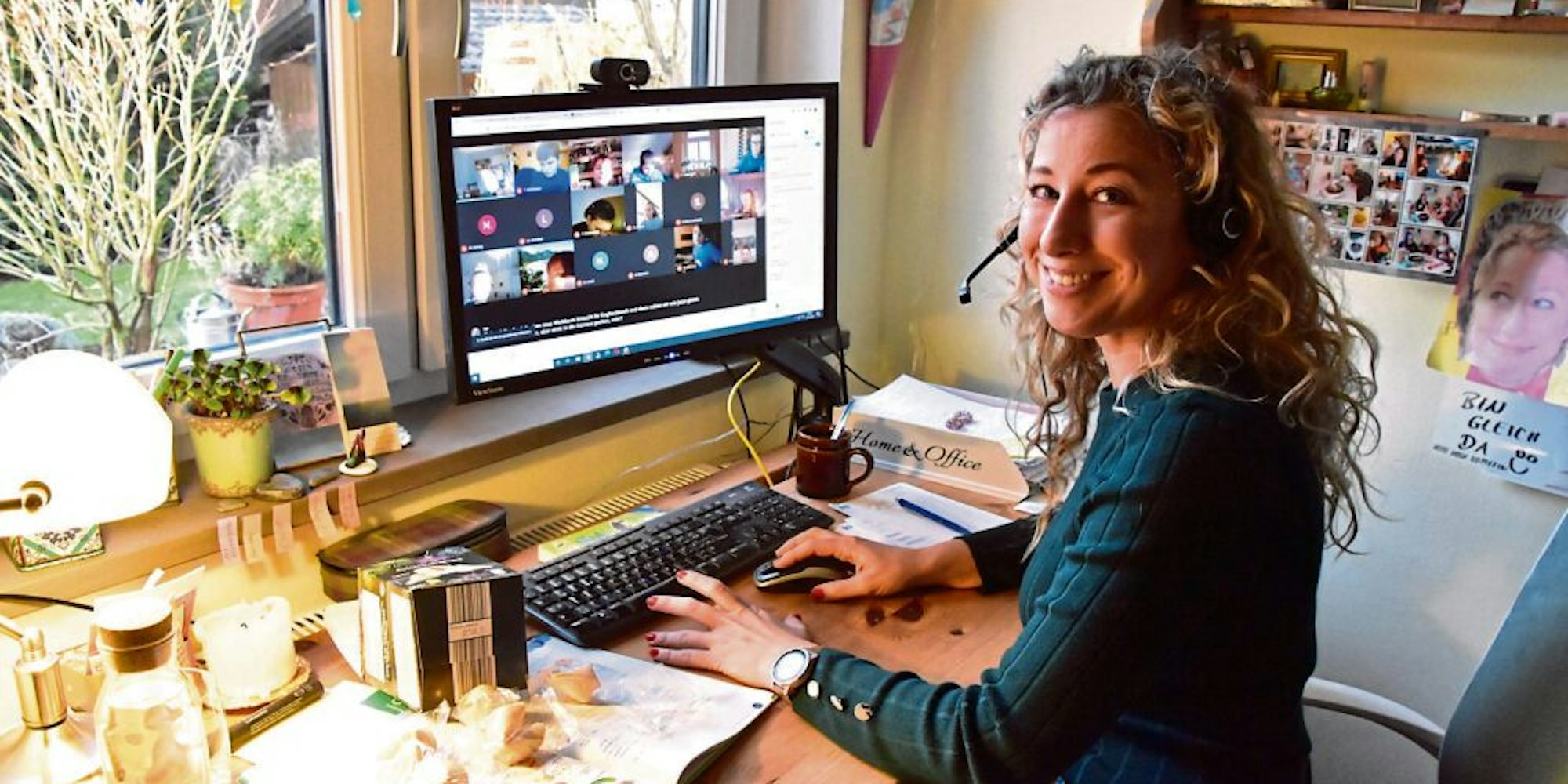 Am heimischen Computer unterrichtet Alexandra Dähling ihre Klasse.