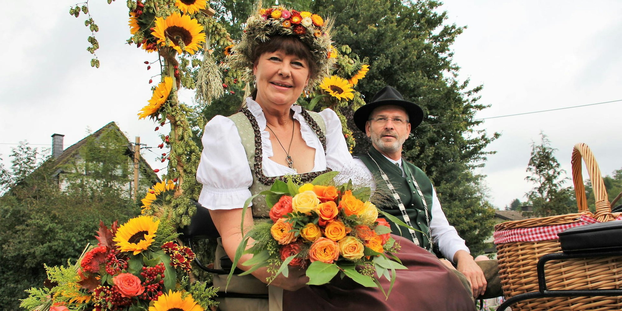 Beatrix und Peter Wieland aus Rodder repräsentierten in diesem Jahr als Erntepaar den Ernteverein Otterbachertal.