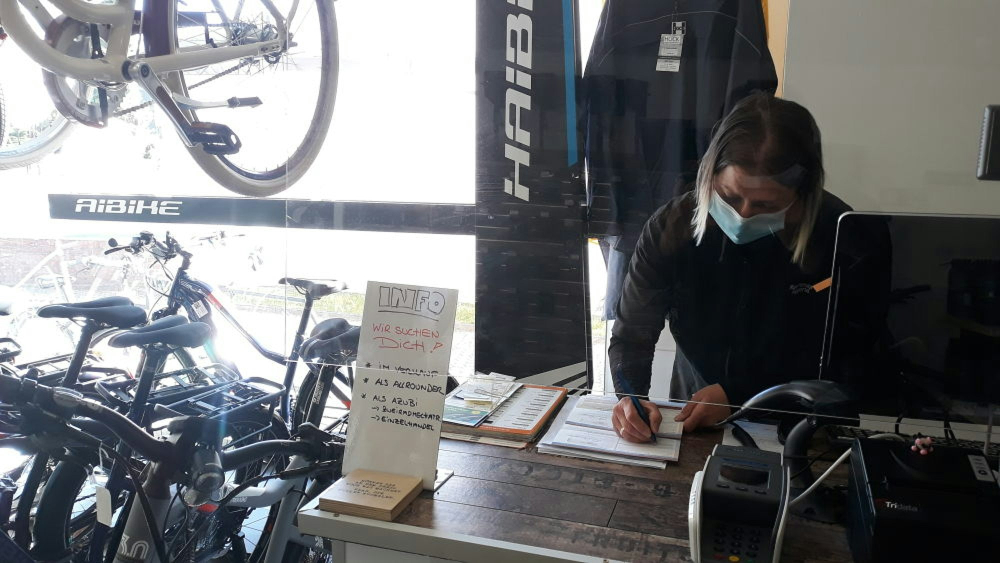 Reparaturaufträge nimmt Prengel nur noch von bestehenden Kunden entgegen, und auch die muss er schon jetzt auf Juli vertrösten. „Wir suchen momentan nach Mitarbeitern, um all die Arbeit zu bewältigen.“ Besonders gesucht sei ein Fahrradmechaniker für die Werkstatt. „Wir sind jeden Tag zwölf bis 14 Stunden beschäftigt“, ergänzt Prengels Frau Olimpia. „Die Leute reagieren auch schon mal ungehalten, wenn wir keine Zeit haben.“ Schon vor dem Beginn der Pandemie haben die Prengels ihr Konzept im Laden umgestellt, Beratungen gibt es nur noch nach Terminabsprache – in der momentanen Situation ohnehin unausweichlich. Während des Lockdowns sprachen sie über Videotelefonie mit den Kunden. Probefahrten boten sie mit einer kontaktfreien Übergabe an, stets wurden die Räder desinfiziert.