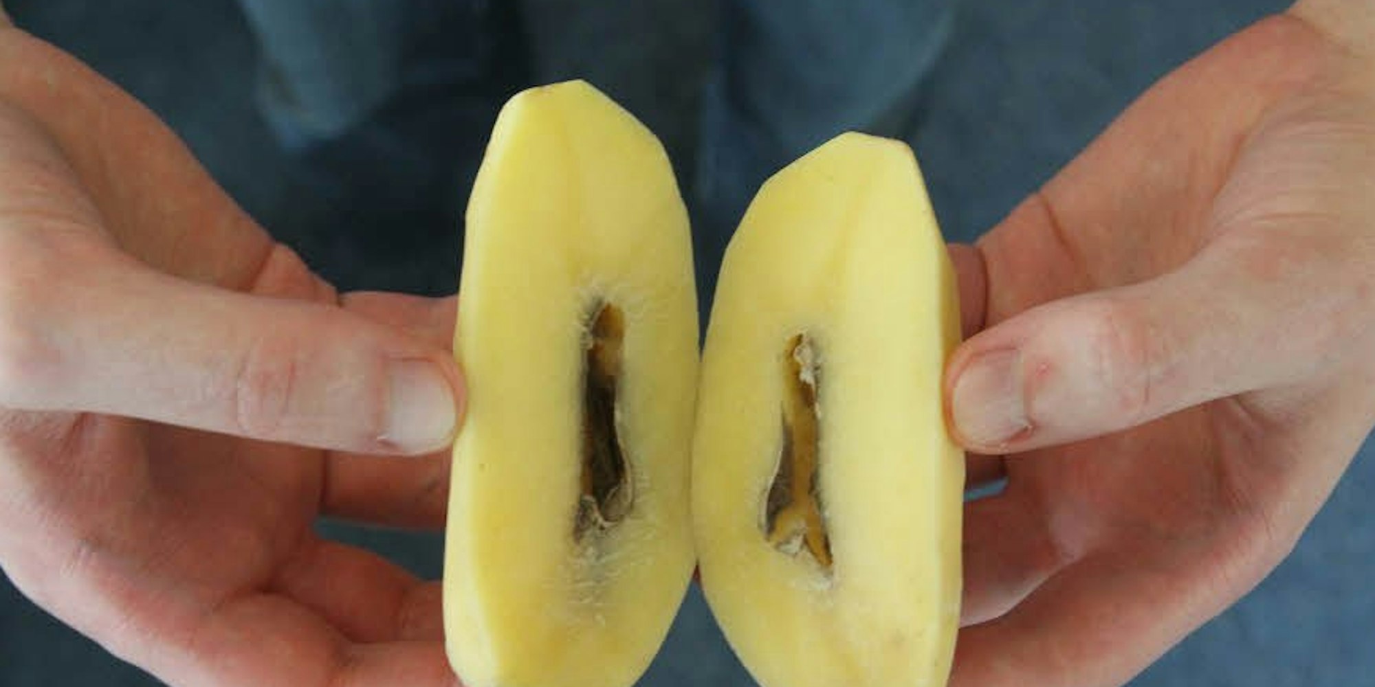 Folgt eine Phase mit günstigen Bedingungen, können die geschädigten Zellen im Kern mit dem Wachstum der Zellen im umgebenden Bereich nicht mithalten. Die Zellen im Kern werden vom umliegenden Gewebe abgestoßen oder das Gewebe im Kern zerreißt. Im weiteren Verlauf des Wachstums entstehen dann die Hohlräume. Dazu Experte Martin Berg: „Dieses Verhalten der Kartoffel ist uns wohlbekannt und beim Anbau von Speisekartoffeln auf unserem Betrieb gefürchtet. Da der Mangel von außen nicht sichtbar ist, können wir die geschädigten Knollen nicht aussortieren und die gesamten Partien sind nicht vermarktungsfähig. Der Speisewert der Kartoffel wird aber nicht beeinträchtigt. Es genügt, die braunen Stellen vor der Zubereitung wegzuschneiden.“