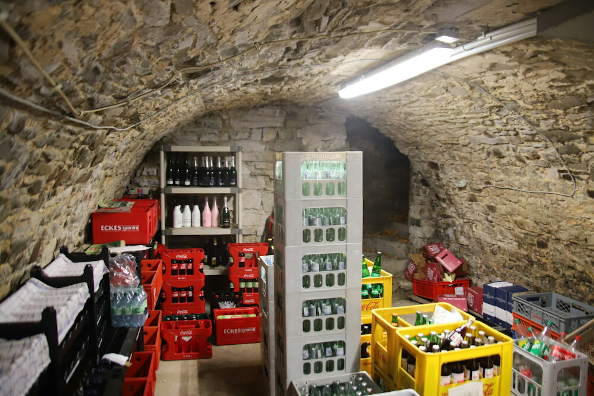 Das Gewölbe im alten Haus war in den 1960er Jahren der legendäre „Ritterkeller“, eine Art frühe Disco. Viele Hennefer haben dort wohl manche legendäre Fete gefeiert. Eine Musikbox sorgte für die Beats. Das Waschbecken neben der damaligen Toilette existiert heute noch.