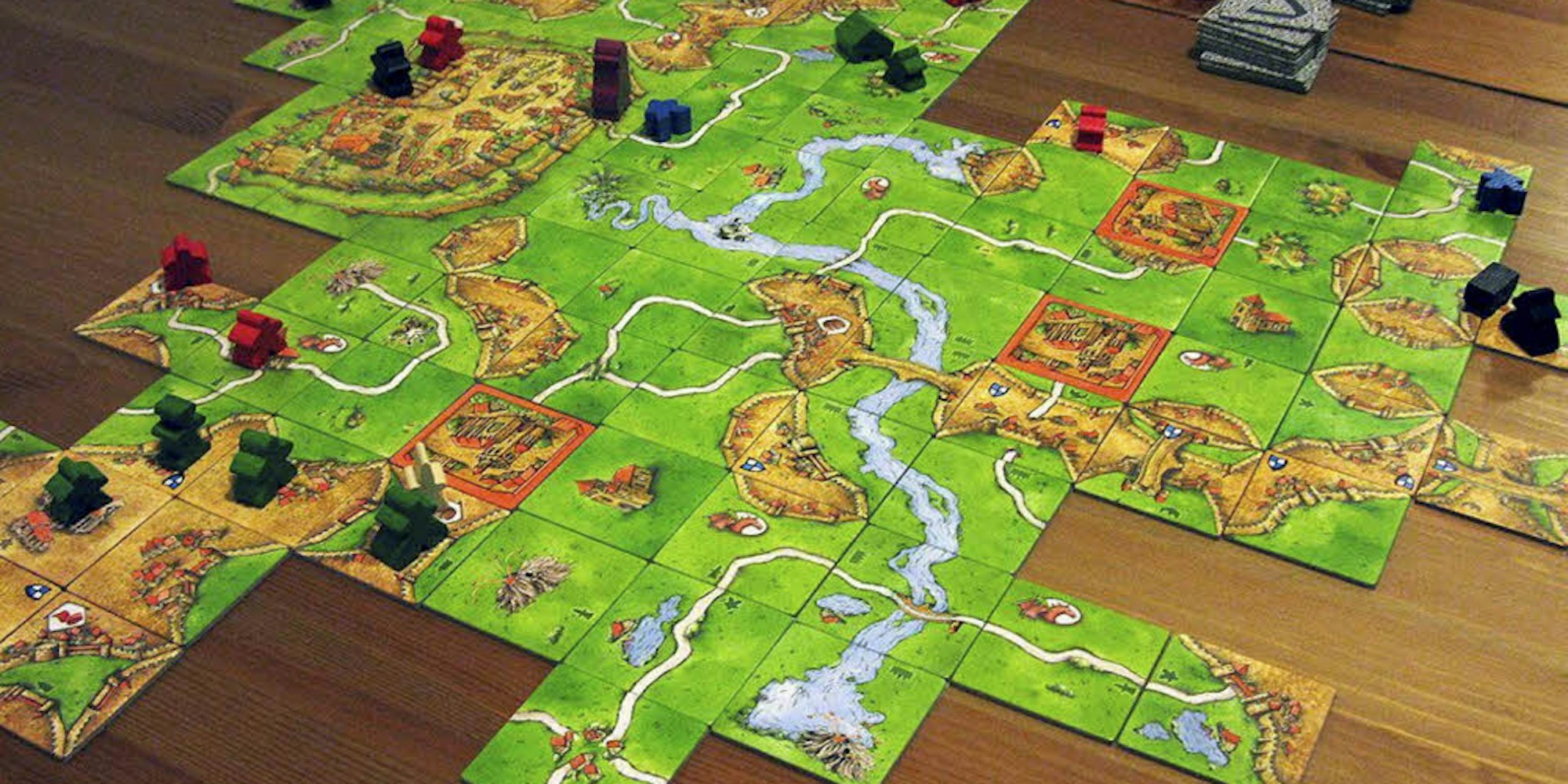 Das Neue an seinem Konzept: Kein Spielfeld, sondern eine Menge Plättchen, auf denen Teile von Burgen und Klöstern, von Straßen und Wiesen abgebildet sind. Abwechselnd fügen die Spieler die Plättchen passend aneinander. Bei jedem Zug kann ein Spieler das Plättchen, welches er gelegt hat, mit einer Spielfigur besetzen. Wer am Ende des Spiels die meisten vollständigen Burgen, Wiesen, Klöster und Straßen besetzt, hat gewonnen.