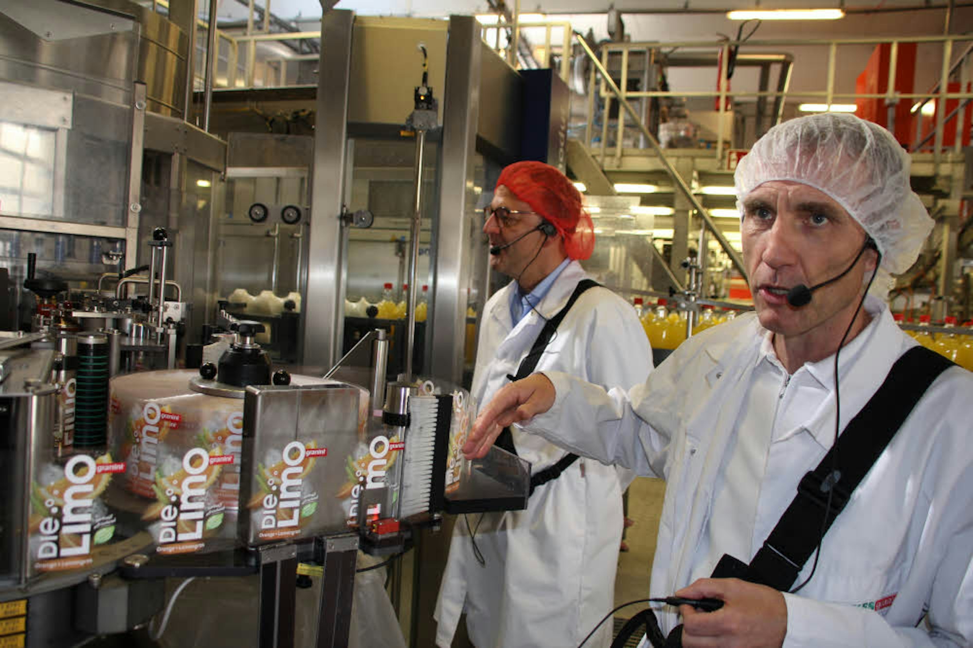 Werkleiter Volker Spohr (r.) und Kay Fischer, Geschäftsführer der Firma Eckes-Granini Deutschland, führten durch die Hallen.