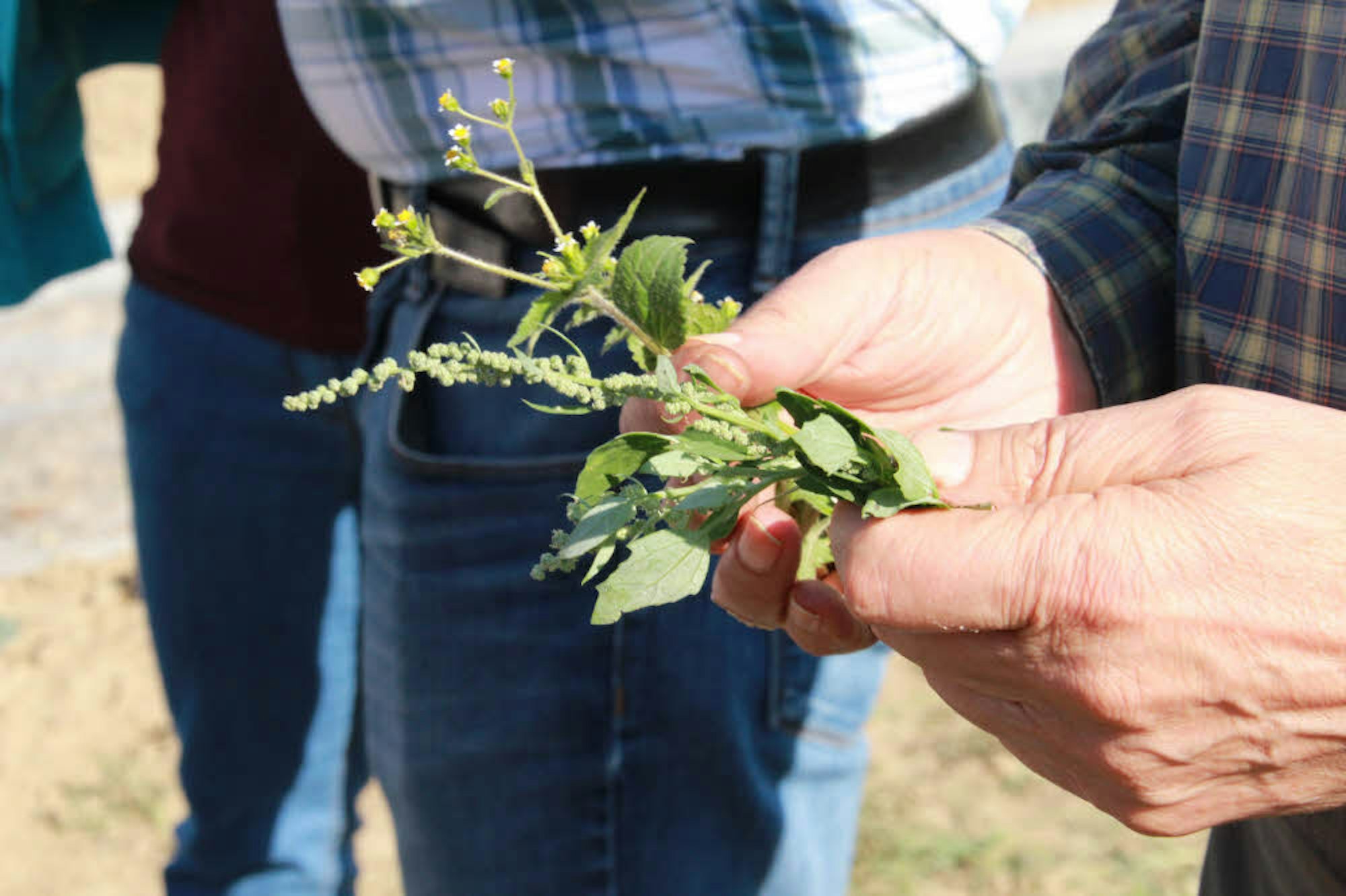 Biologe Rudolf Rabe gab beim „Aktionstag Ökolandbau“ Tipps zum Aufpeppen der Speisen durch Wildkräuter. Franzosenkraut und Melde (rechts) pflückte er am Wegesrand.
