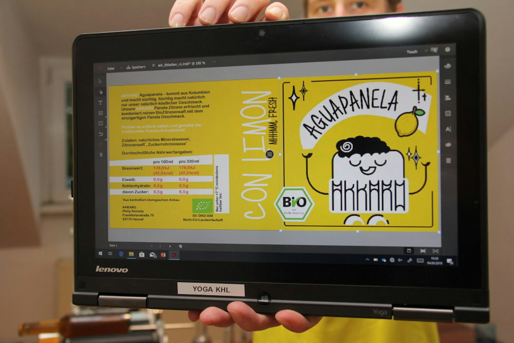 Hennef – Der große 110-Liter-Kochtopf steht im Vorratsraum, gleich daneben eine alte Etikettiermaschine, Baujahr anno Tobak. Letztere haben Philip Schmitz und Felix Land gebraucht erstanden, der Topf ist nagelneu. Noch weitere Teile ihrer selbstgebauten Abfüllanlage für „Aguapanela Akkaro“ lagern in der kleinen Mansardenwohnung am Horstmannsteg.