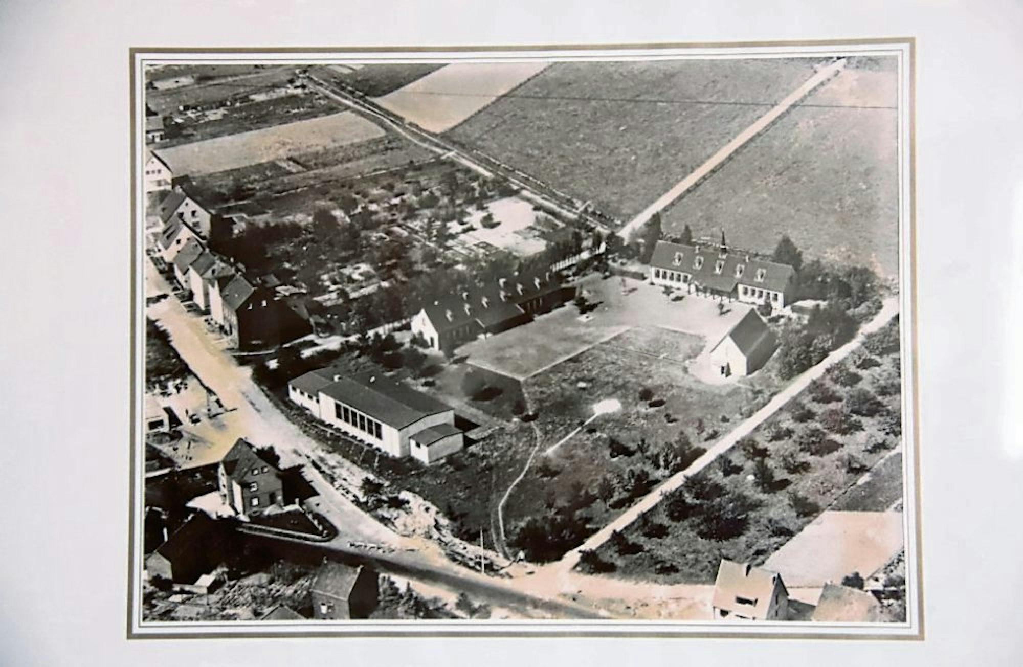 Die katholische Grundschule an der Wehrstraße steht schon, rechts davon sind heute die Gebäude der Gesamtschule Hennef-West.