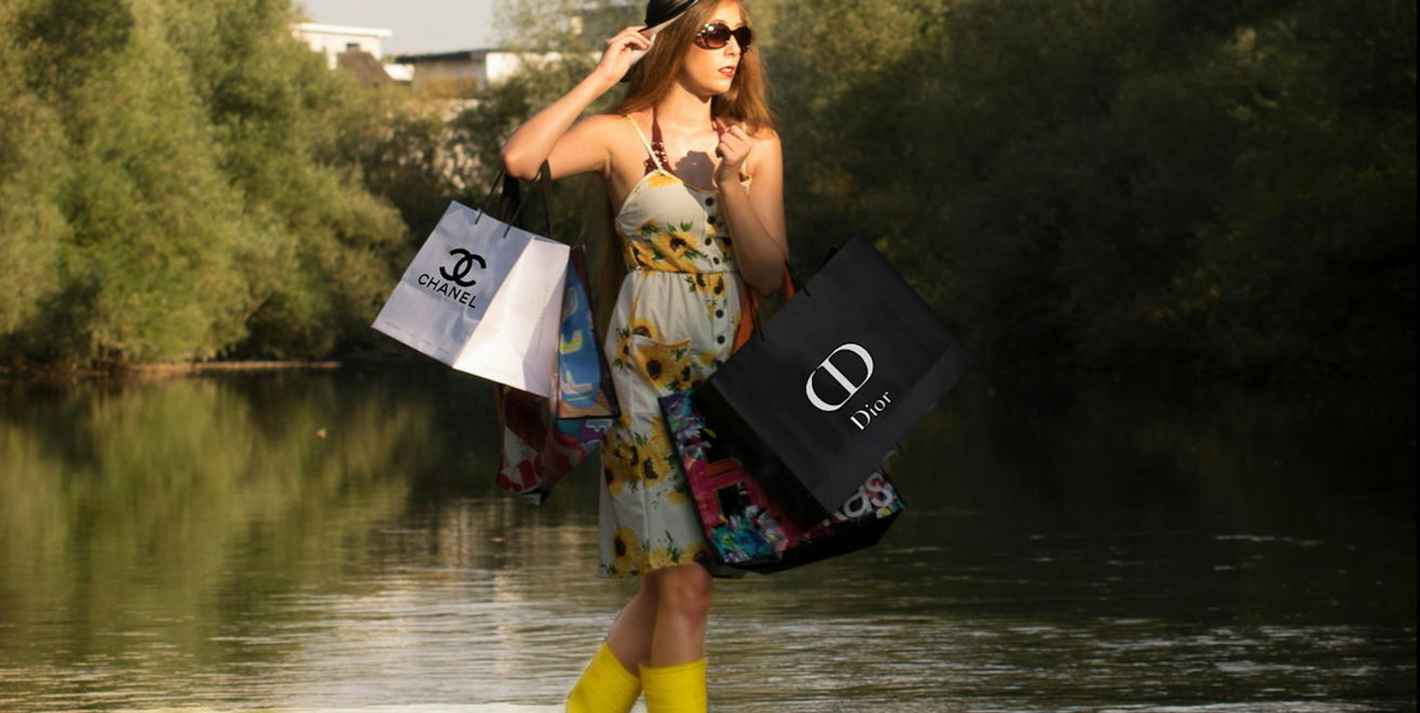 Freundin Janine Müller ließ sich als erste dabei fotografieren, wie sie durch den Fluss watet. In Gummistiefeln und bepackt mit Einkaufstüten, auf denen die Logos einiger Edelmarken prangten, marschierte die junge Frau von Ufer zu Ufer. Die Resonanz auf Facebook war riesig. „Ich will auch so ein Bild“, schrieben viele, die es sahen, gut fanden oder teilten. Inzwischen, in gerade einmal zwei Wochen, ist daraus ein Selbstläufer, eine richtige Bewegung daraus geworden.