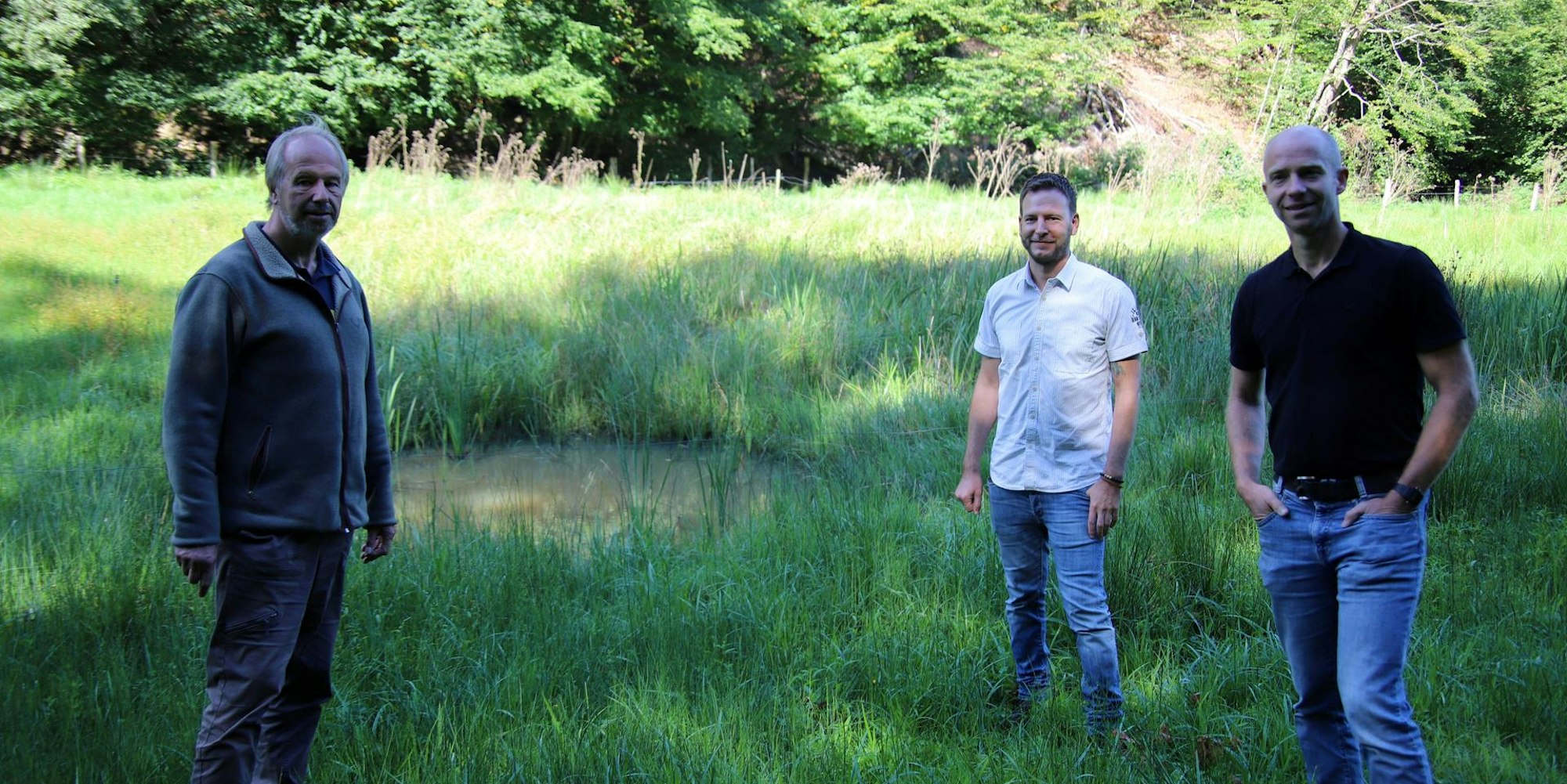 Halbzeitbilanz zogen Ralf Badtke, Dieter Steinwarz und Christoph Rothenwöhrer (v.l.) im Ravensteiner Bachtal.