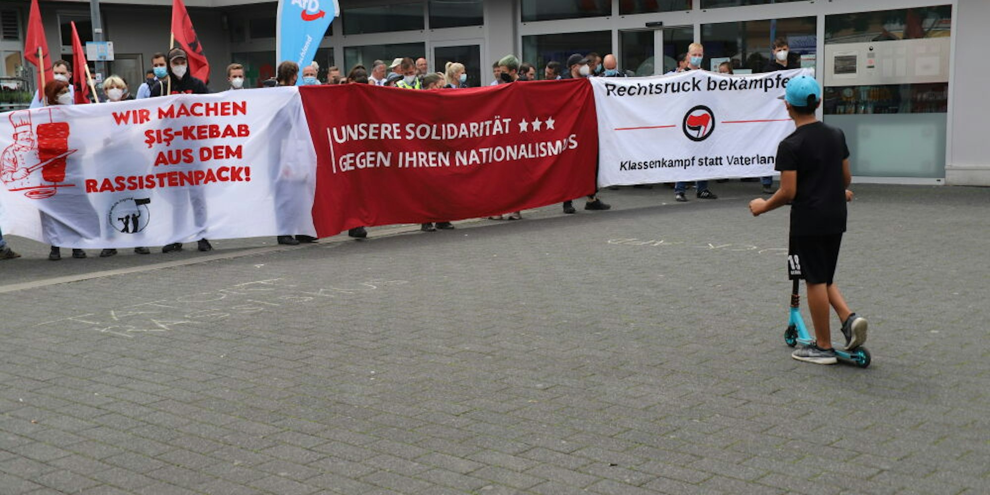 Aufmerksam geworden auf den AfD-Stand waren sie durch ein Flugblatt, dass die rechtspopulistische Partei verteilen wollte. „Es ist absurd, dass die AfD eine Vergewaltigung im Wahlkampf instrumentalisieren will.“ Dem Bürgermeister wird darin ohne weitere Begründung Nichthandeln vorgeworfen. Es geht um eine zwei Jahre zurückliegende Straftat eines Geflüchteten. „Die Polizei wollte nicht, dass wir uns davor stellen. Im Zweifelsfall muss die Zivilcourage über Genehmigungen stehen“, argumentierte der Sprecher.